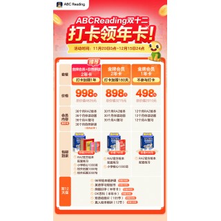 【ABC reading打卡啦】💥💥💥ABC Reading 本年度*后一次福利 🎁打卡🉐会员时长 ✅998打卡送365天会员,到手3年 ✅898打卡送180天会员,到手2.5年 🎁配套学习礼盒包邮到家 RAZ官方绘本