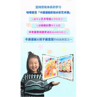 双十一超级福利活动,买课赠课,哈喽爱豆 漫画艺术课 适合7岁+的小朋友 赠送全套绘画礼盒,送油画大师课视频16节+送精品水粉课视频24节+送30张16开绘画纸+送立体摆台画2幅