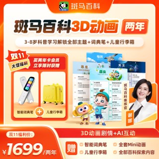 🌈斑马百科双十一活动,燃爆一年一次❗ 🔥 斑马百科全套启蒙课,孩子认知UP⏫ 🍓百科年卡🎁 赠送:词典笔一支,得力文具礼盒1套,斑马VIP 会员1年(价值268元)
