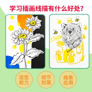 双十一超级福利活动,买课赠课,哈喽爱豆 插画线描艺术课 适合7岁+的小朋友 赠送全套绘画礼盒,送油画大师课视频16节+送精品水粉课视频24节+送30张16开绘画纸+送立体摆台画2幅