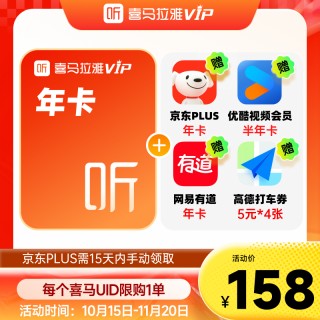 🌈【限时】喜马拉雅「买1得5」全家桶! 💰券后仅158元=喜玛拉雅年卡+京咚PLUS年卡+网yi有道年卡+优ku半年卡+高德打车券!