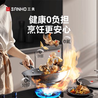 🔥🔥🔥三禾厨具新款0涂层不粘炒锅!下单即赠送百洁布+不锈钢钢铲