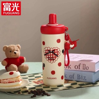 可可猫条纹吸管保温杯简约男生女生便携水杯网红高颜值杯子