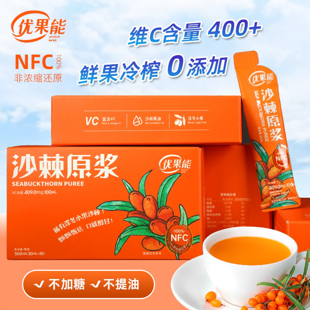💥🎆新年送礼* 1-2月份限时礼盒装❗❗❗买五赠一 优果能沙棘原浆 精选山西吕梁野生小果100%NFC 维C含量400+ 深冬采摘有机小果 无添加无农残