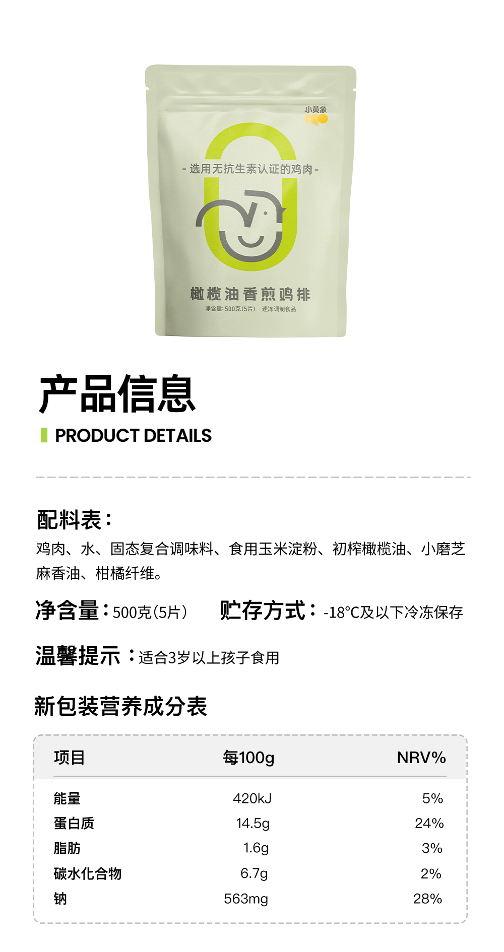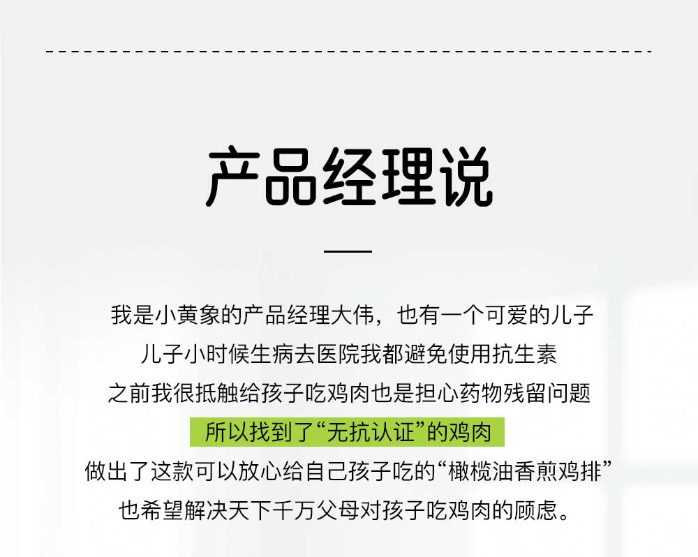 商品名称:小黄象无抗鸡排整肉原切,配料表干净,不添加香精、防腐剂、色素--放心给孩子吃