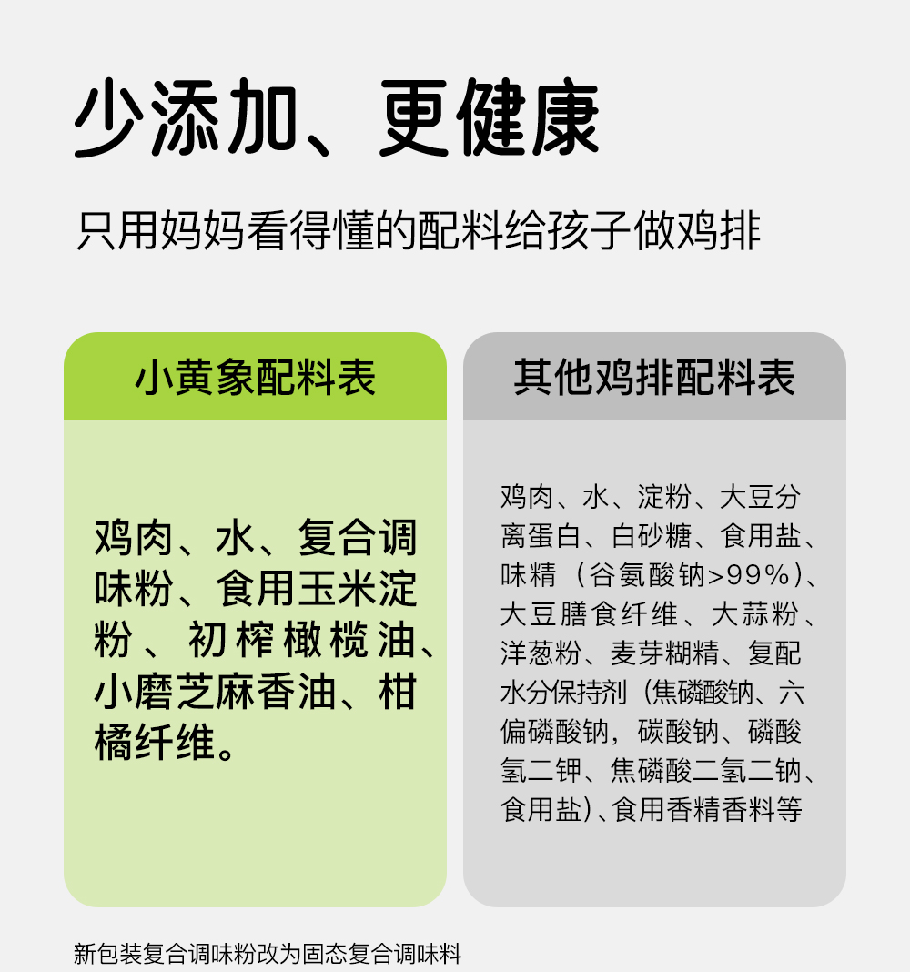 小黄象无抗鸡排整肉原切,配料表干净,不添加香精、防腐剂、色素--放心给孩子吃