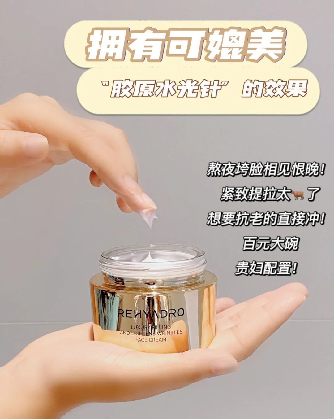 商品名称:华熙生物润熙泉奢润淡纹充盈面霜[50g/瓶」送5 片1.5g装