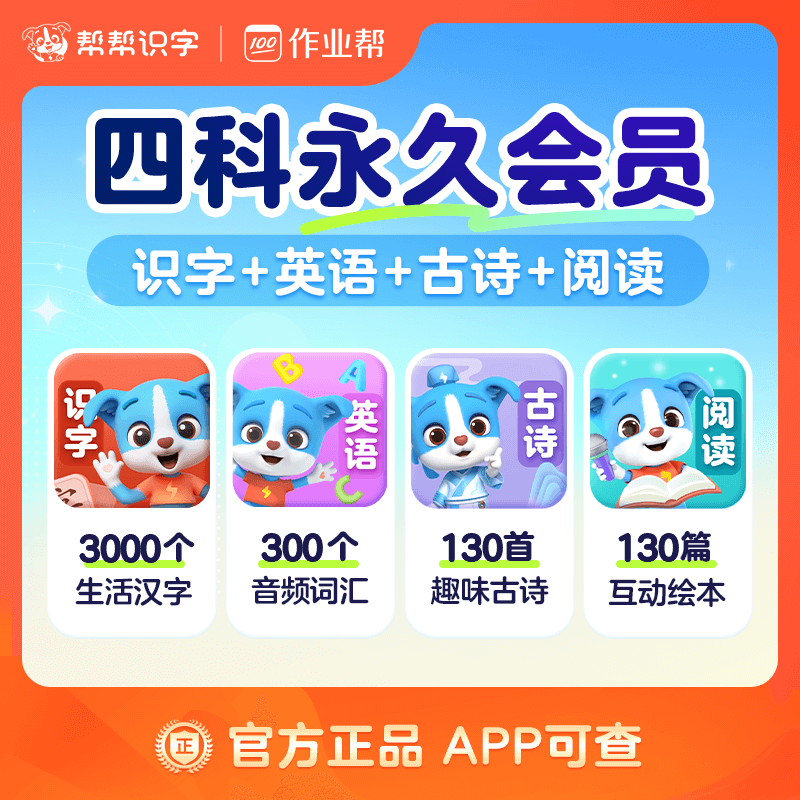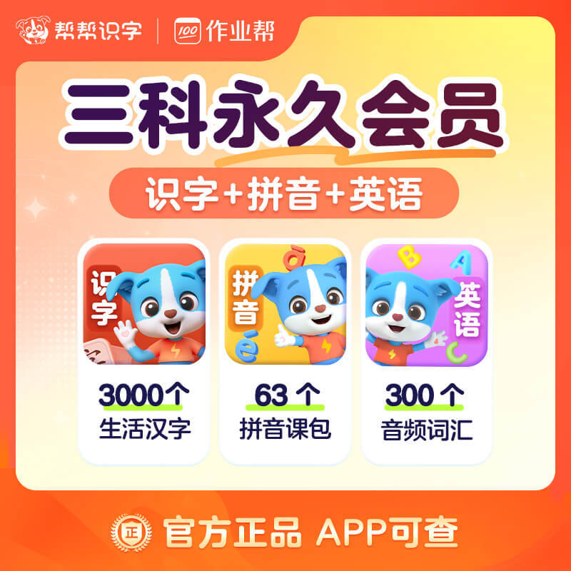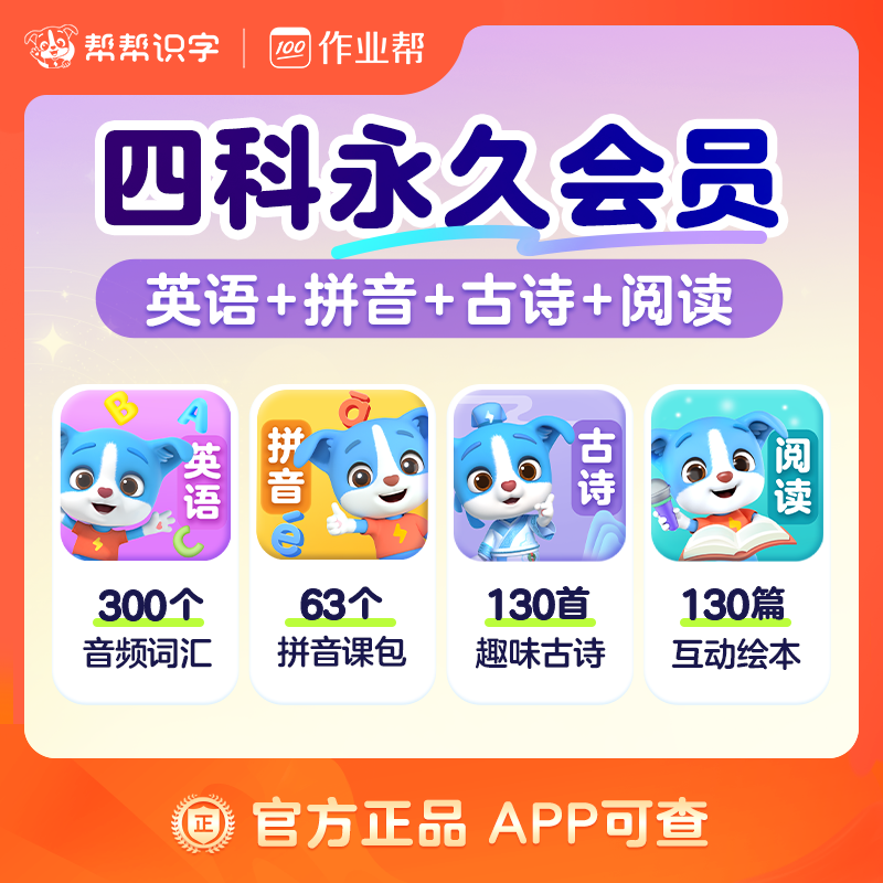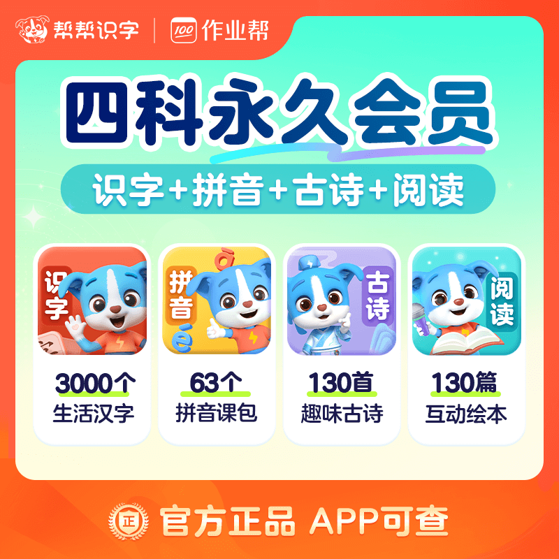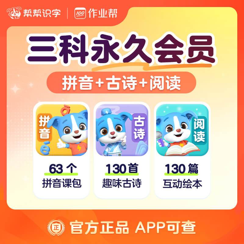 商品名称:🌈帮帮识字全系列回归大促销❗ 🌈帮帮识字全系列永久卡来啦❗ 🔥帮帮识字-拼音-古诗-阅读-英语