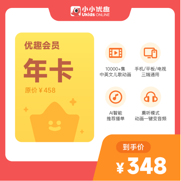 海量原版英文动画资源的App【小小优趣】SVIP年卡❗