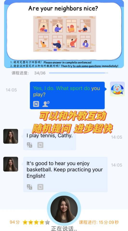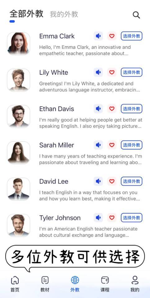 多位外教可供选择,而且所有的外教都是纯正北美口音,语速也可以调整,满足个性化的学习需求。