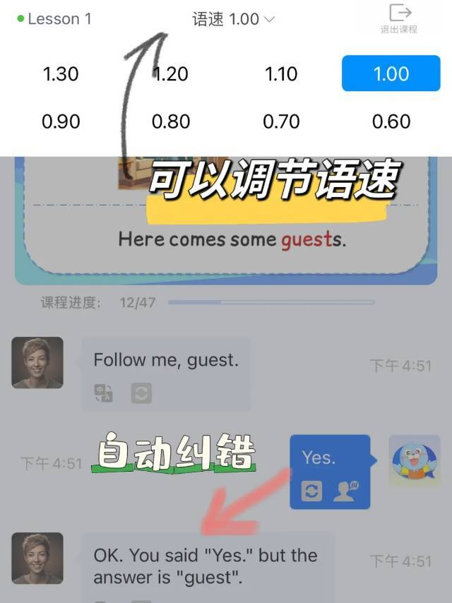 语速太快,可调节语速和重听▼