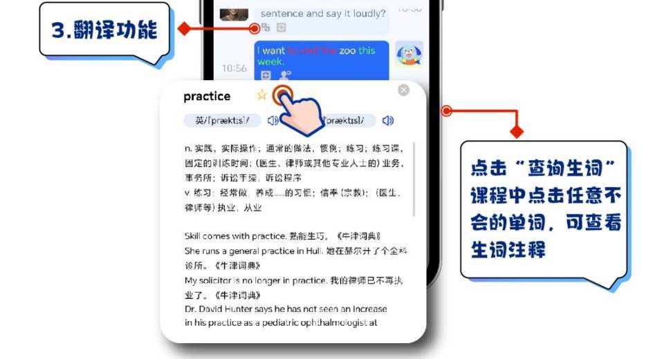 同时,MyAI口袋外教还有与校内教材同步的课程涵盖人教版、译林等,是专为学生量身定制的,帮助孩子在复习中巩固知识,同时提升口语表达能力。