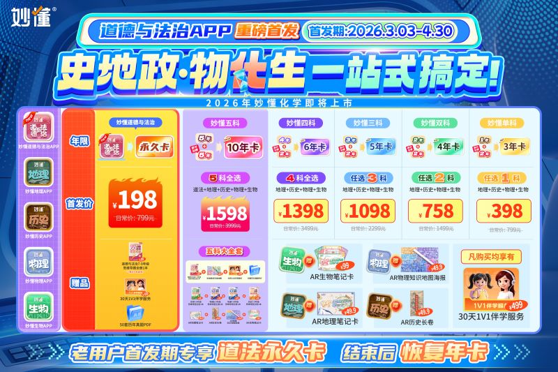 🔆【妙懂单科-历史/物理/地理/生物】3年卡:💰398