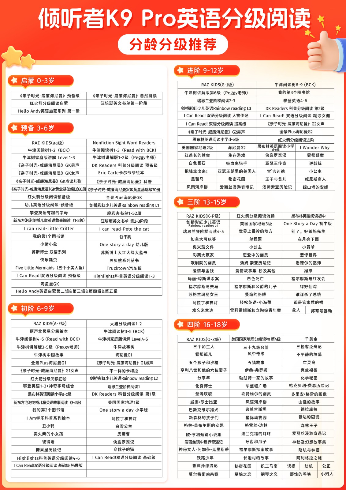 ⚠️中秋国庆狂欢购福利2025听力机天花板来了!⁣🔥倾听者K9Pro !‎💥硬件软件猛升级,‍资源狂加量,‫🎉价格1毛不涨!🔥开学季提分神器!✨海淀妈妈圈疯抢!⁢AI精听精讲+真人外教对话,让孩子英语成绩暴涨!