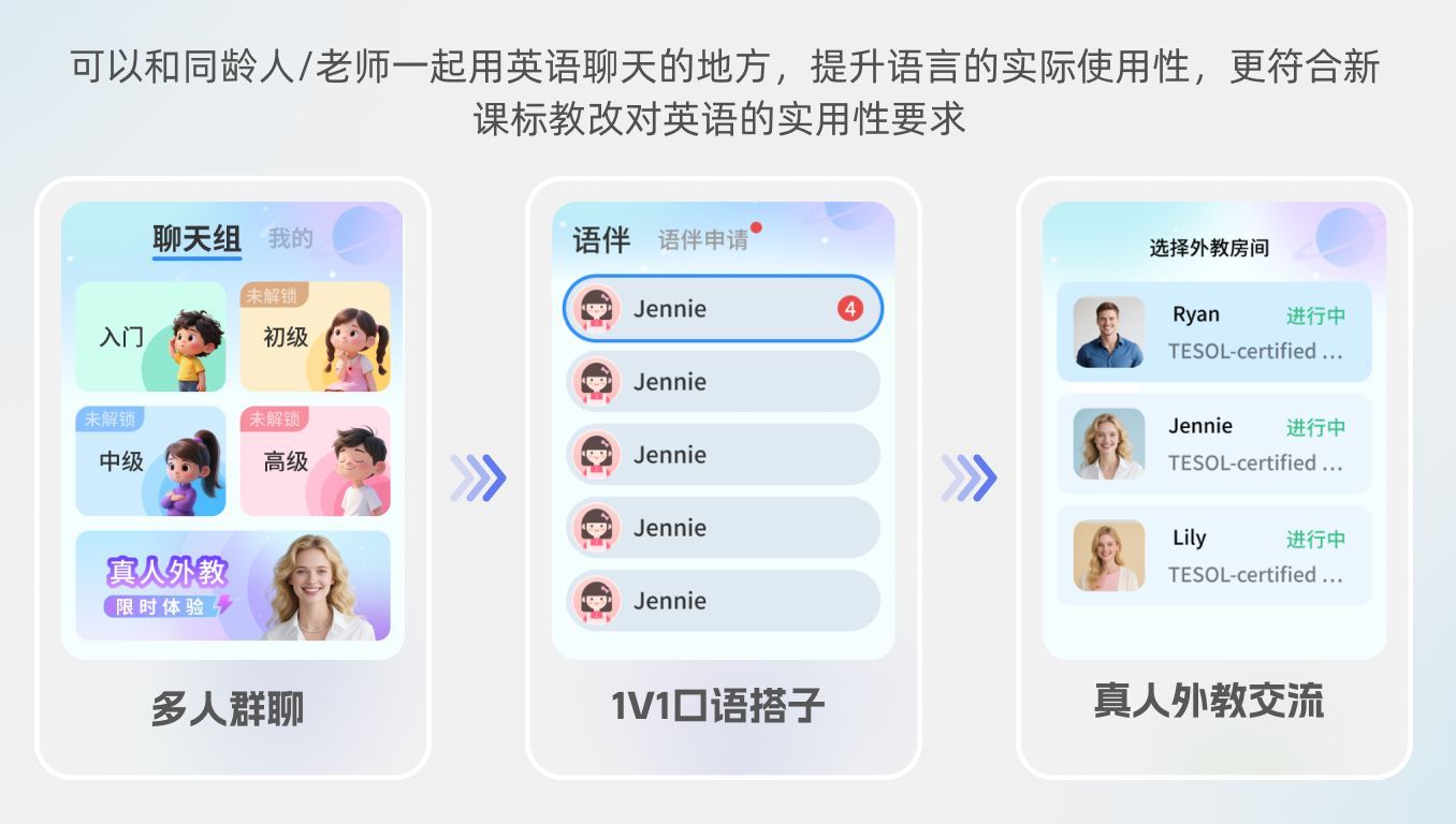 碰到同年级、同水平的小朋友,能加好友深度聊。在真实对话中互相*,共同进步。