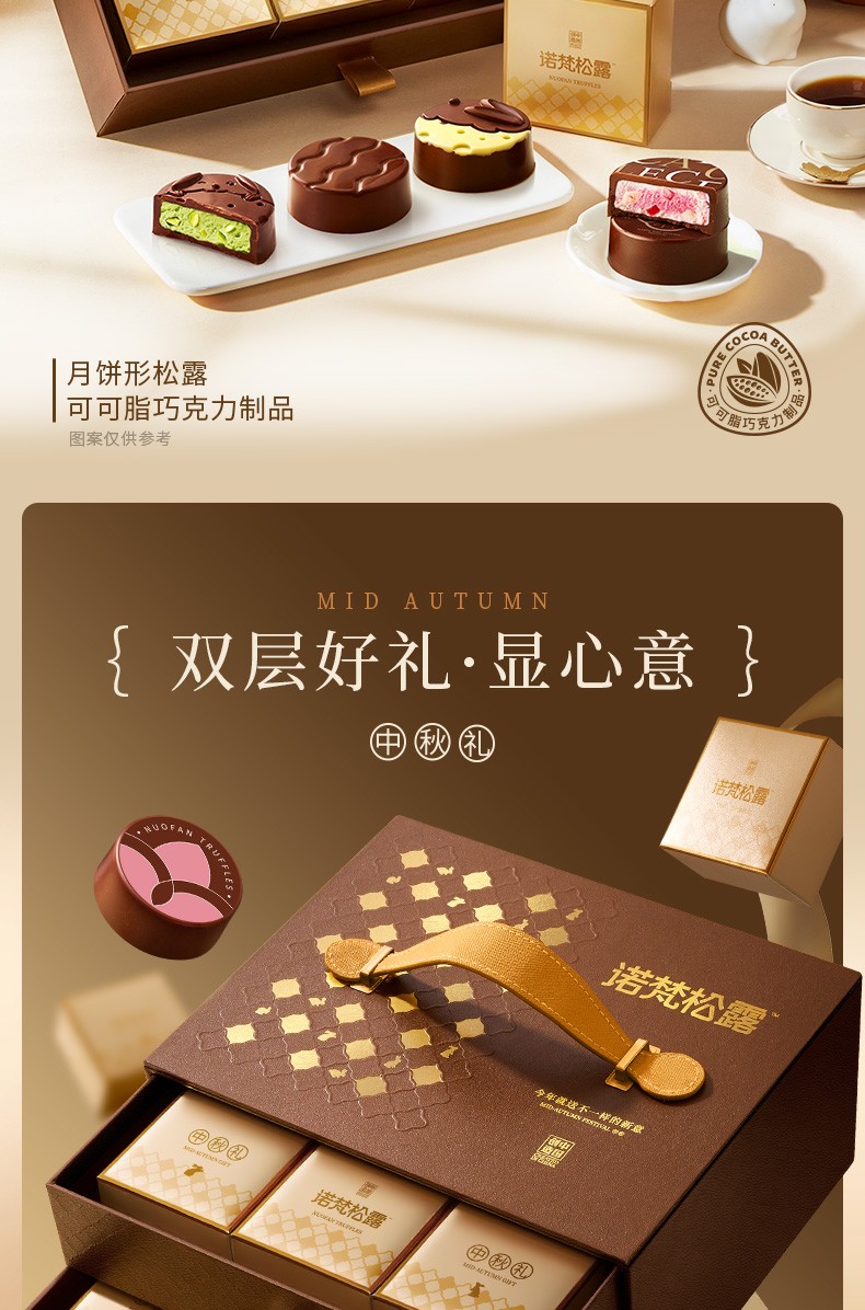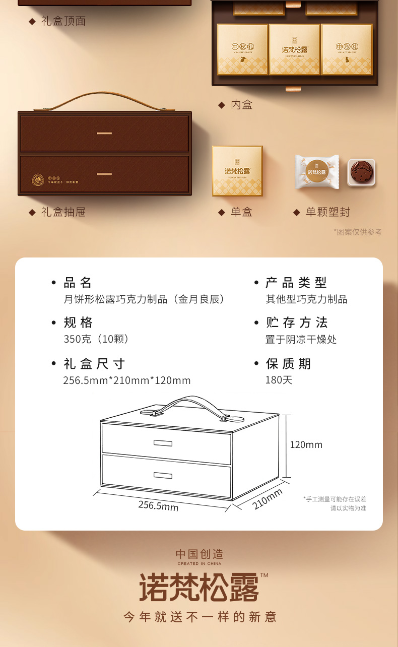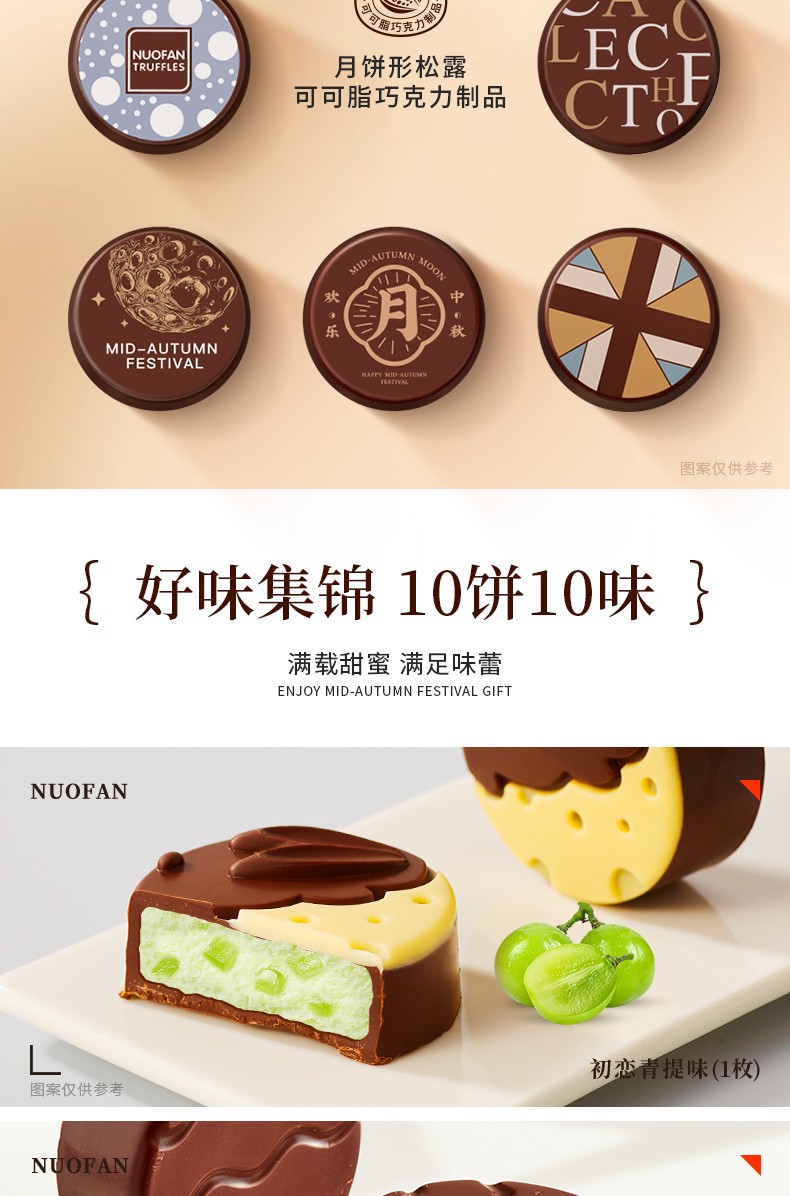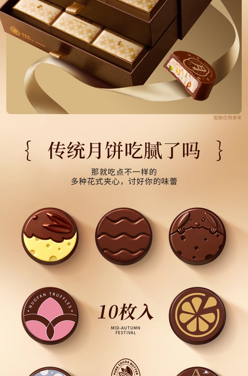 商品名称:【中秋优选】诺梵纯可可脂金月良辰巧克力举月饼10枚!