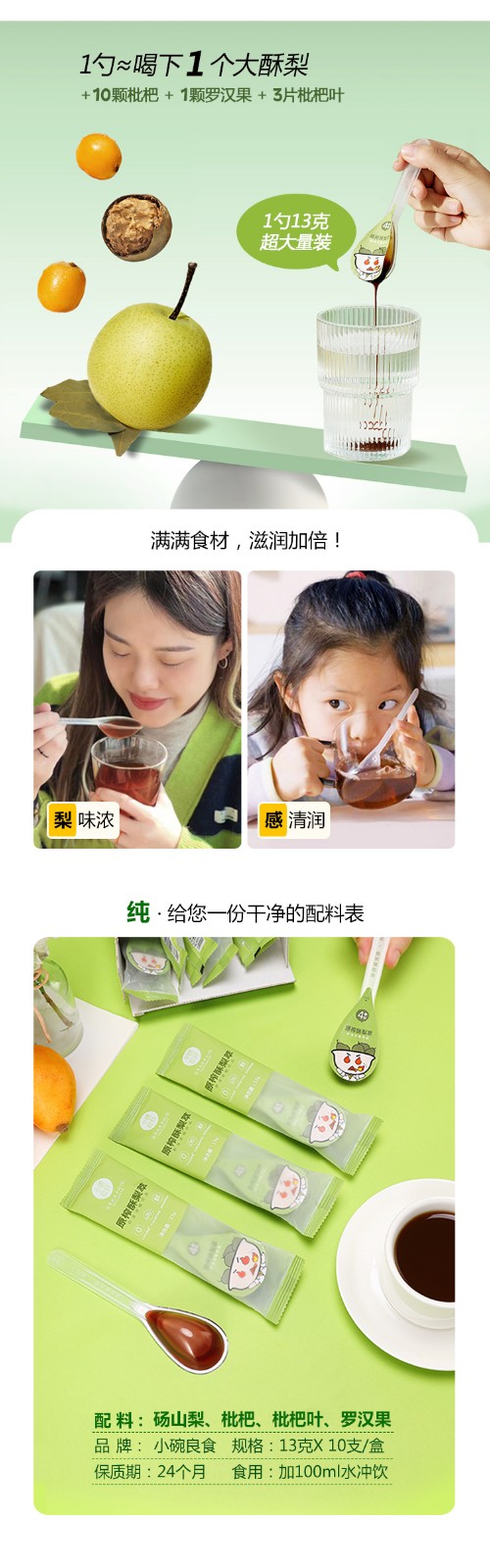 商品名称:小碗原榨酥梨萃10支/盒 酥梨枇杷罗汉果无添加梨膏 老人小孩孕妇可食