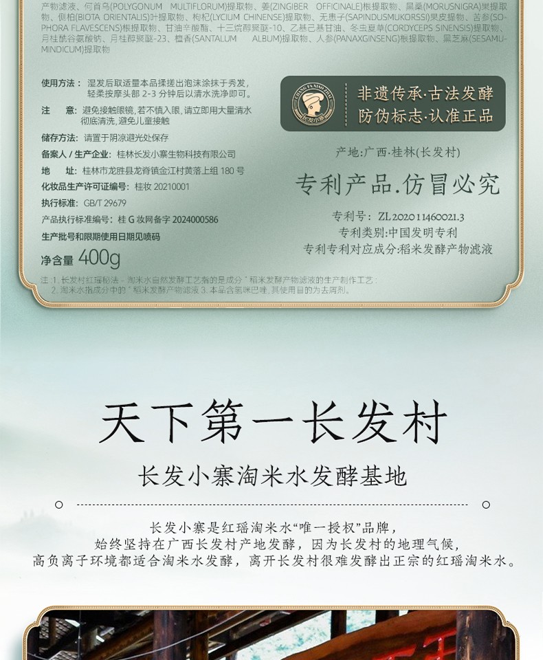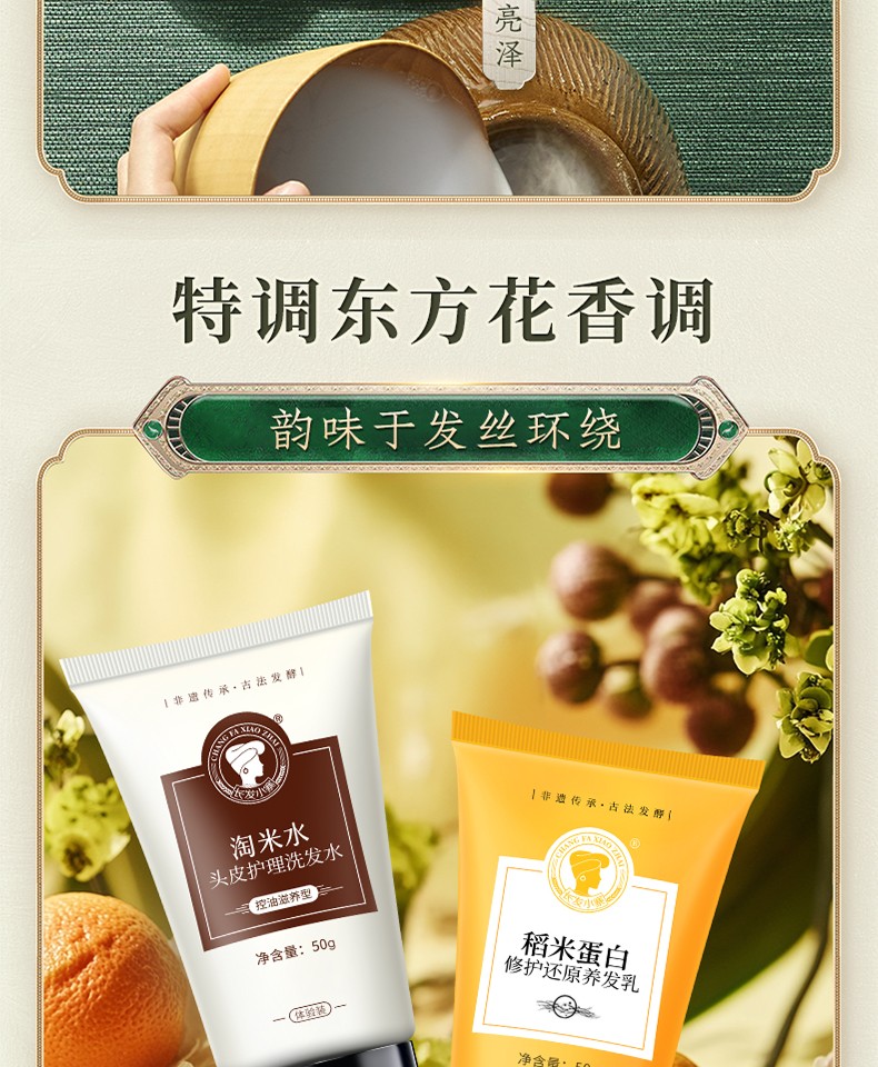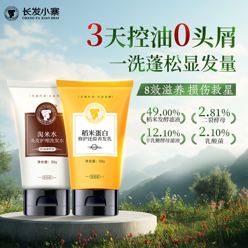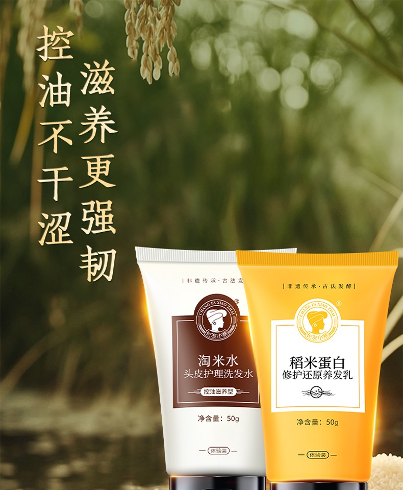 商品名称:长发小寨淘米水控油滋养洗发水稻米蛋白养发乳旅行装组合