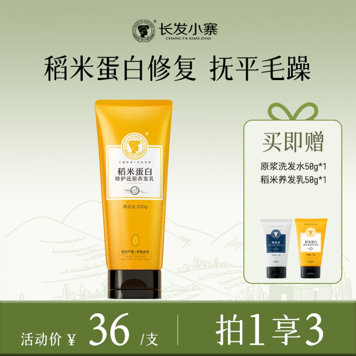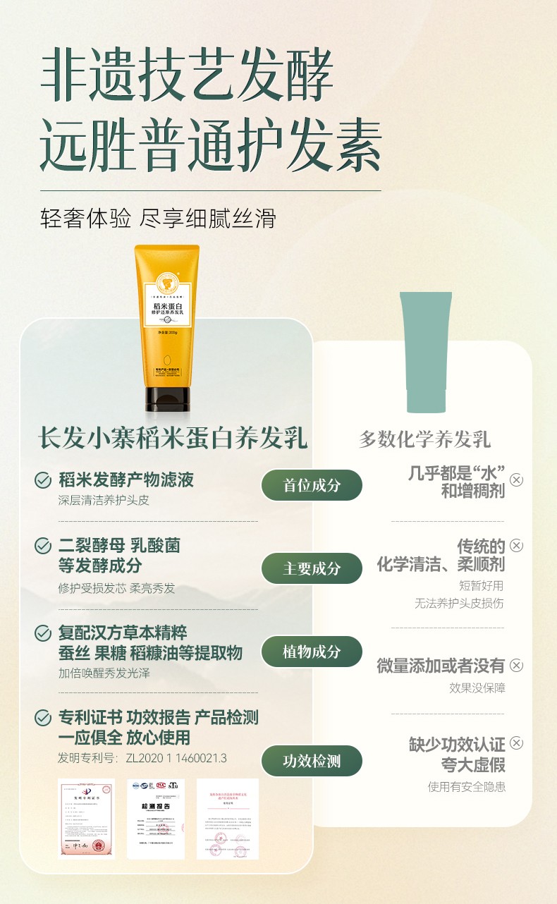 商品名称:【抚平毛躁干枯】长发小寨稻米蛋白修护还原养发乳
