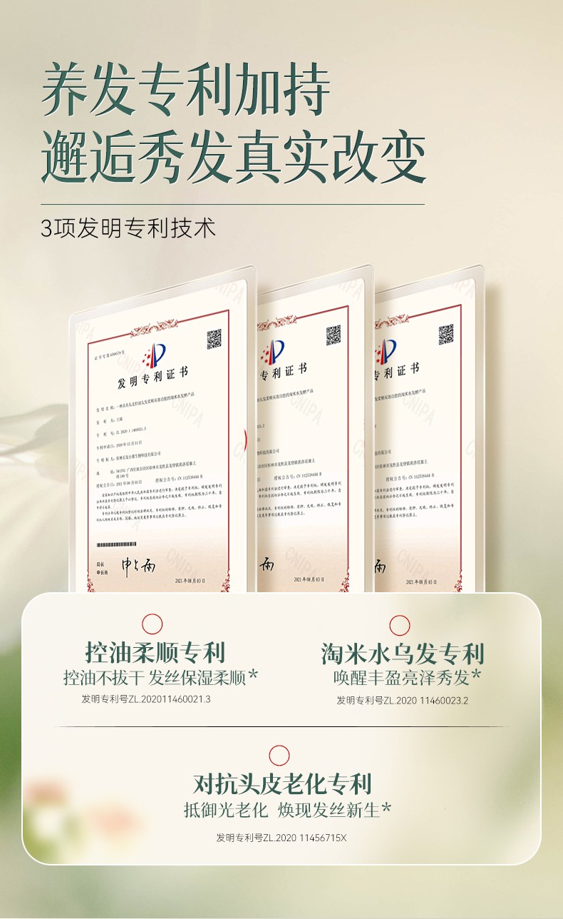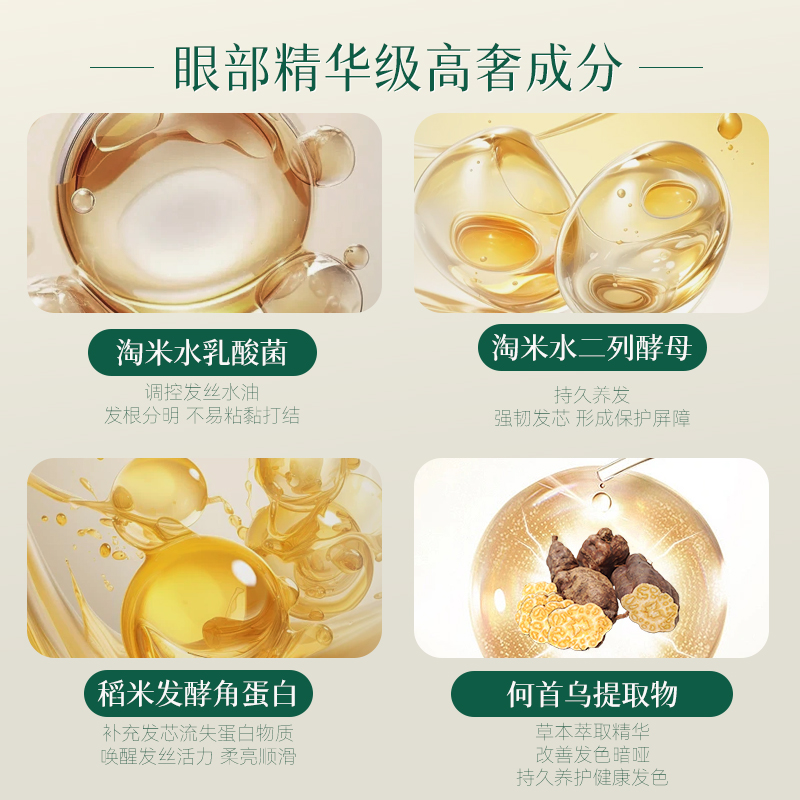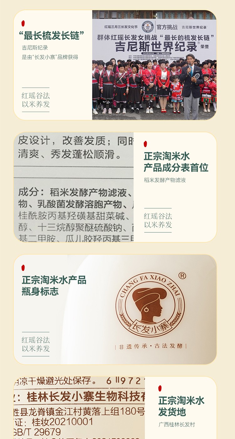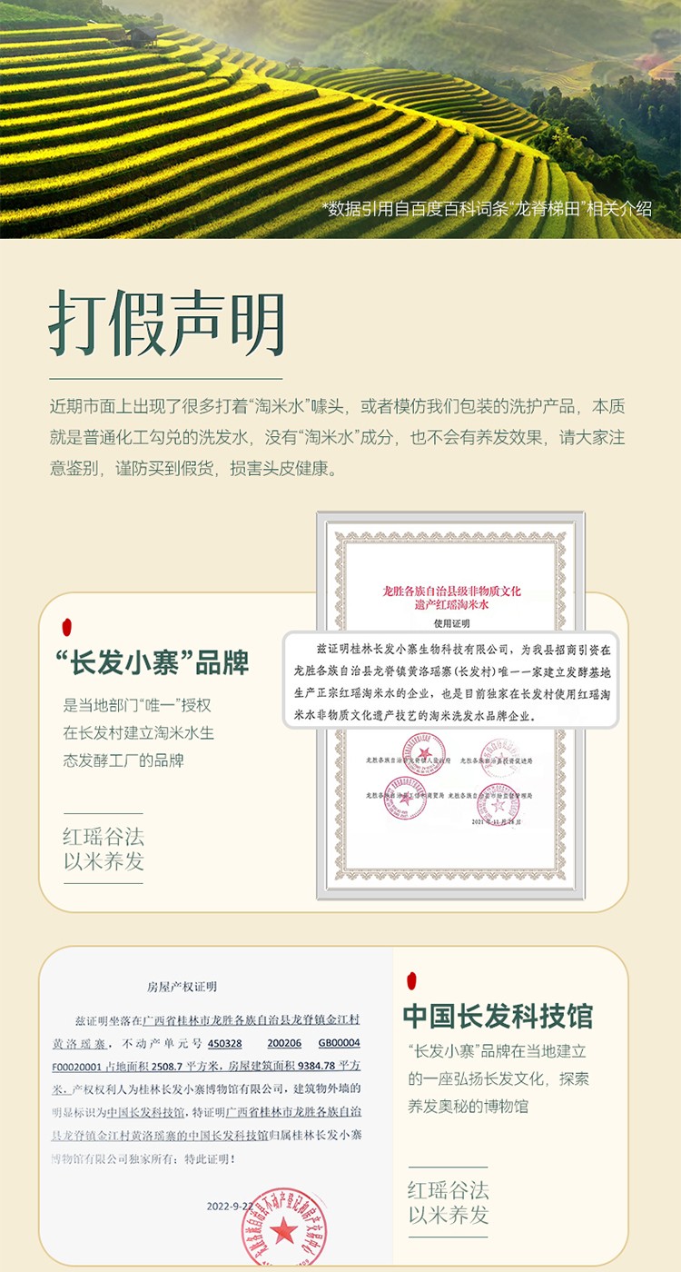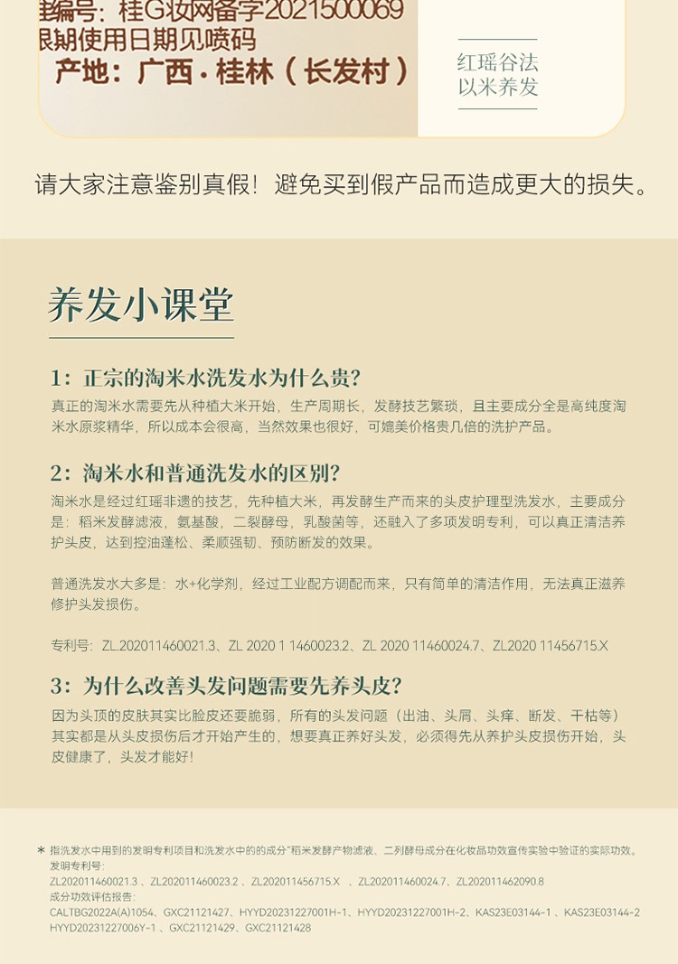 成分表首位为龙脊梯田土壤孕育而成“稻米发酵滤液”。 丰富的角蛋白精华和二裂酵母乳酸菌营养及何首乌提取物