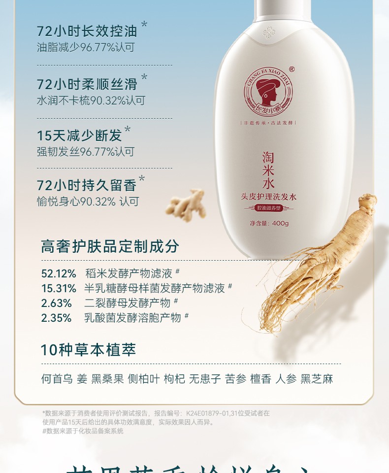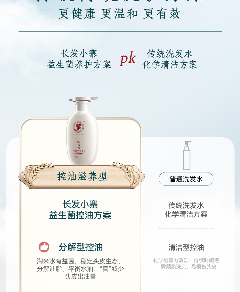 商品名称:【针对干性发质】长发小寨淘米头皮护理水控油滋养洗发水