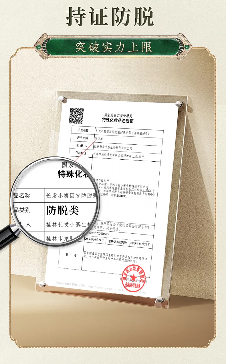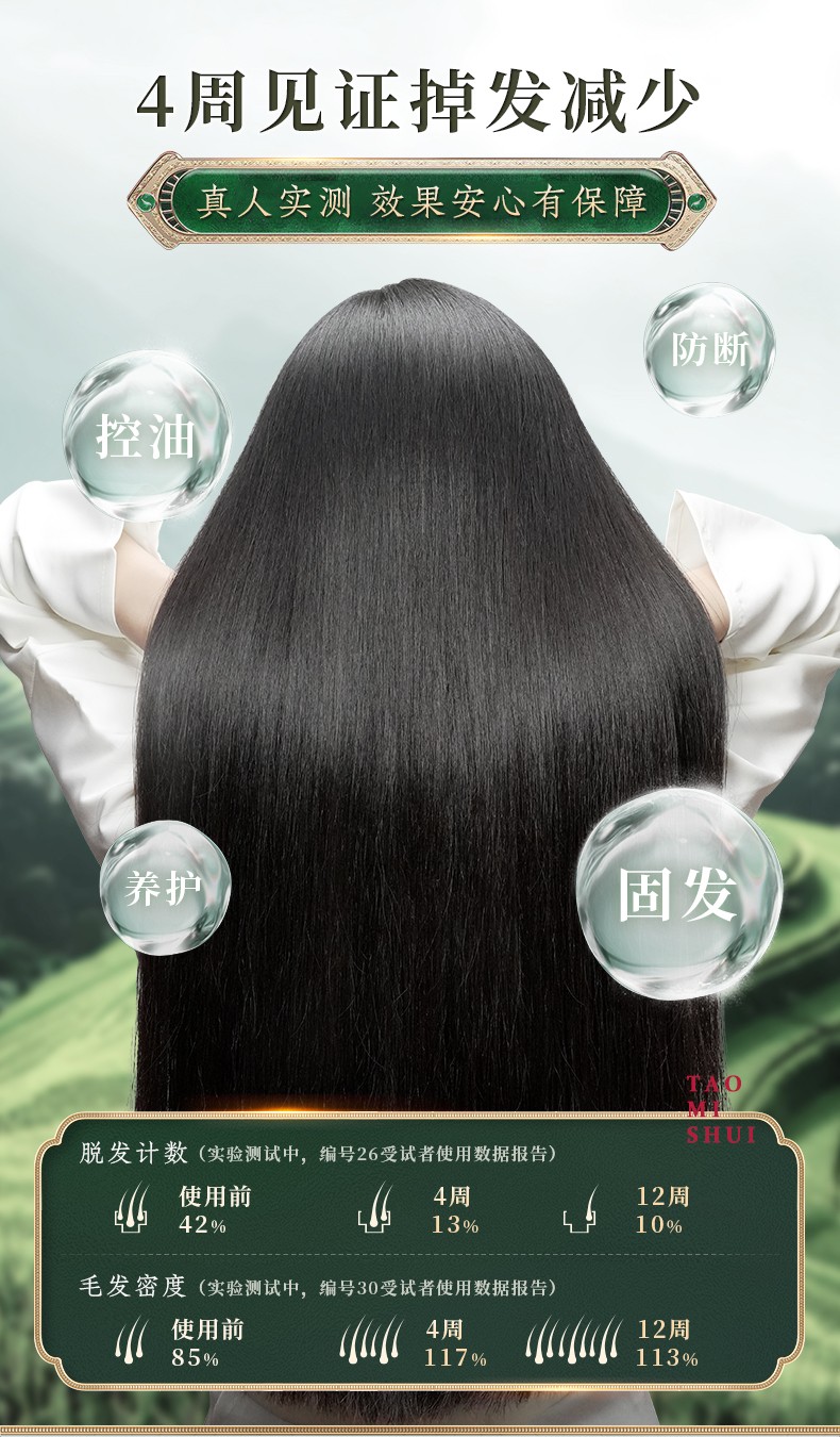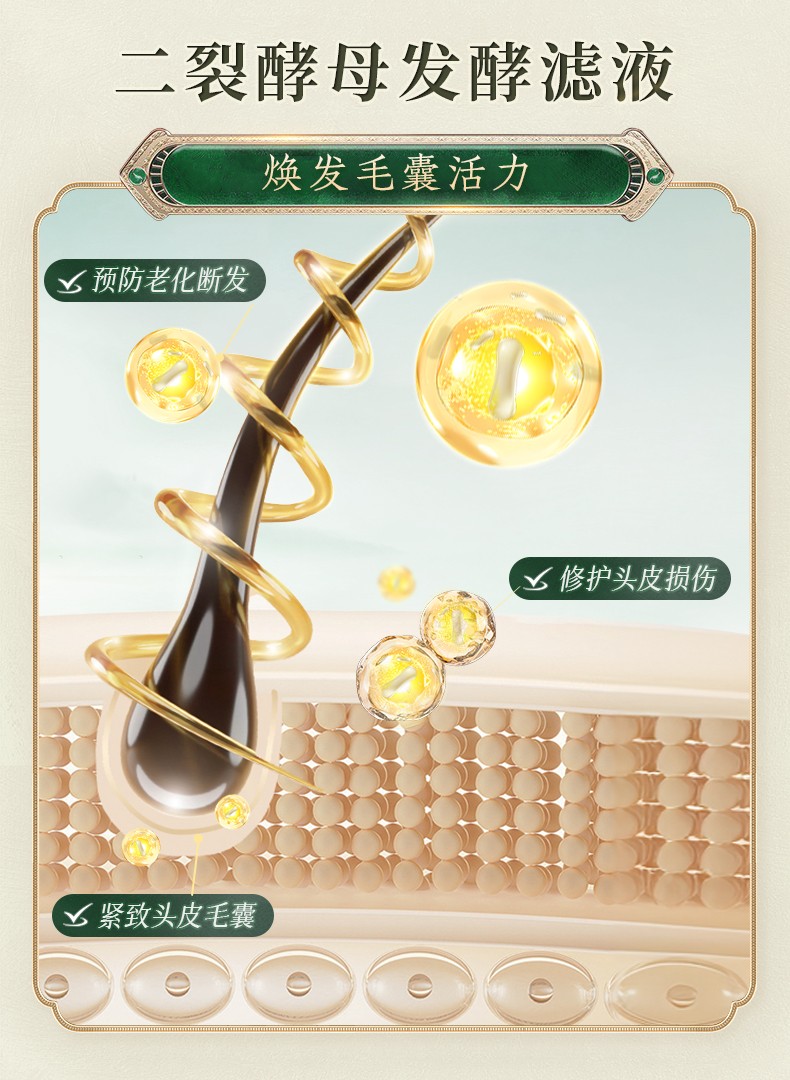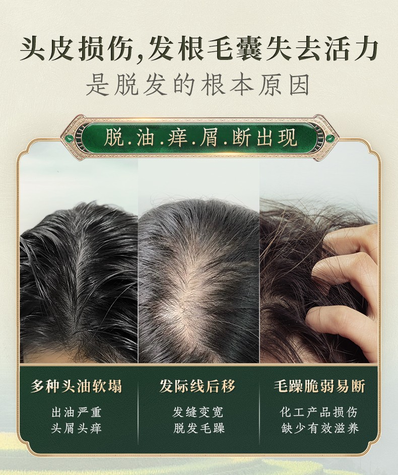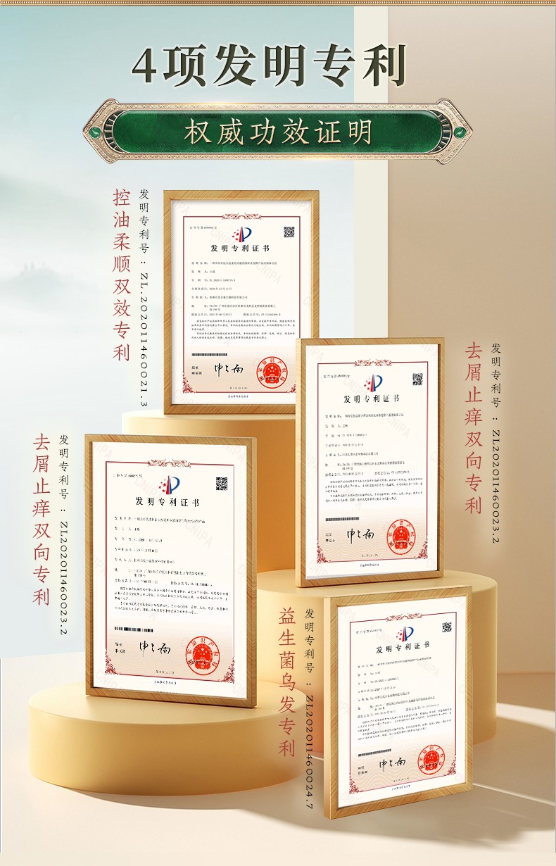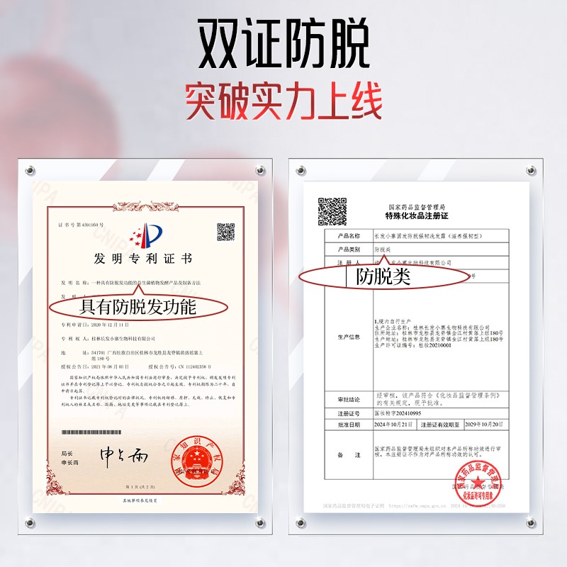 温和养护毛囊发根,强韧发根,固发防脱。紧致头皮毛囊, 稳固提升发量,持有国家防脱专利