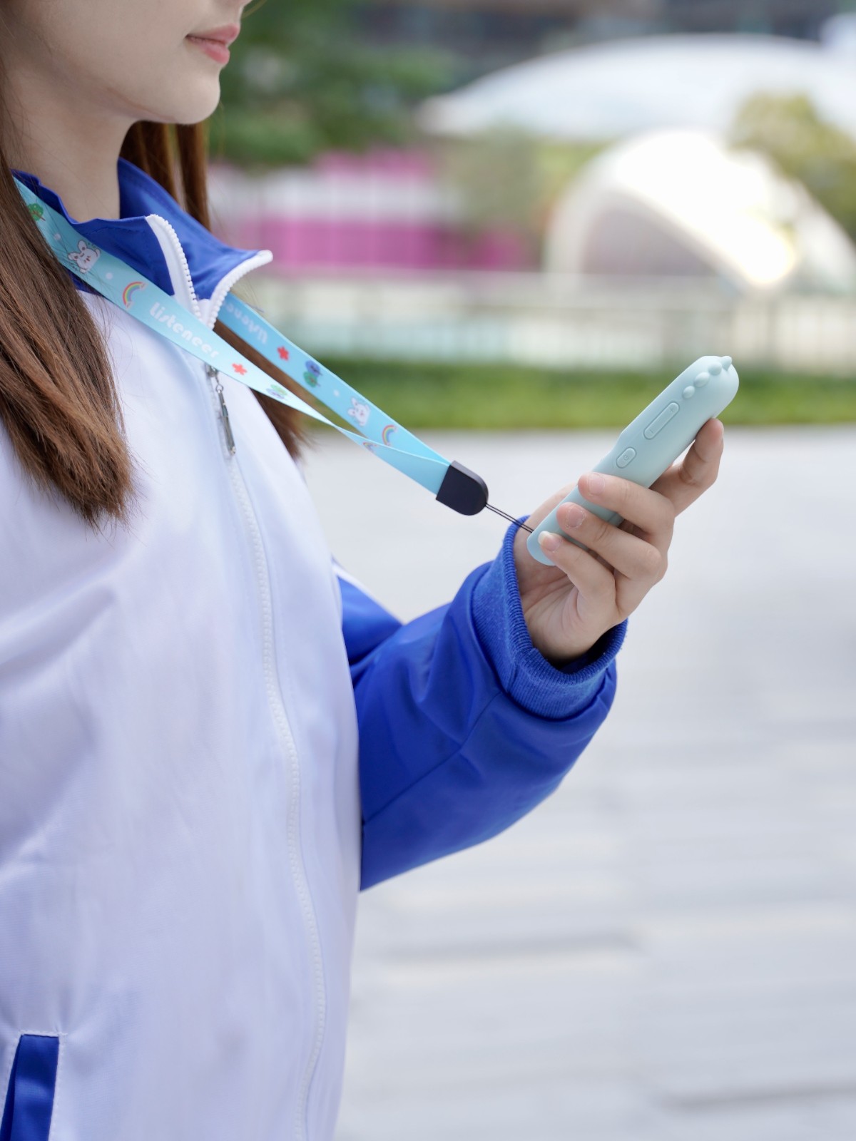 3)更小巧,更轻盈,重量只有80g,相当于一颗柠檬的重量,孩子挂脖带出门久了都会以为没挂上!