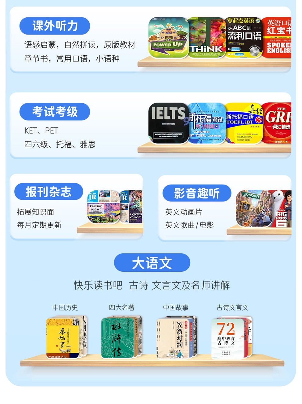 🌈2、从没用过听力机的,今年新课改,英语难度升级了很多,孩子基础不好的,强烈推荐入一个,给孩子做好课内复习预习,打好课内基础不丢分,不用担心小学分流!