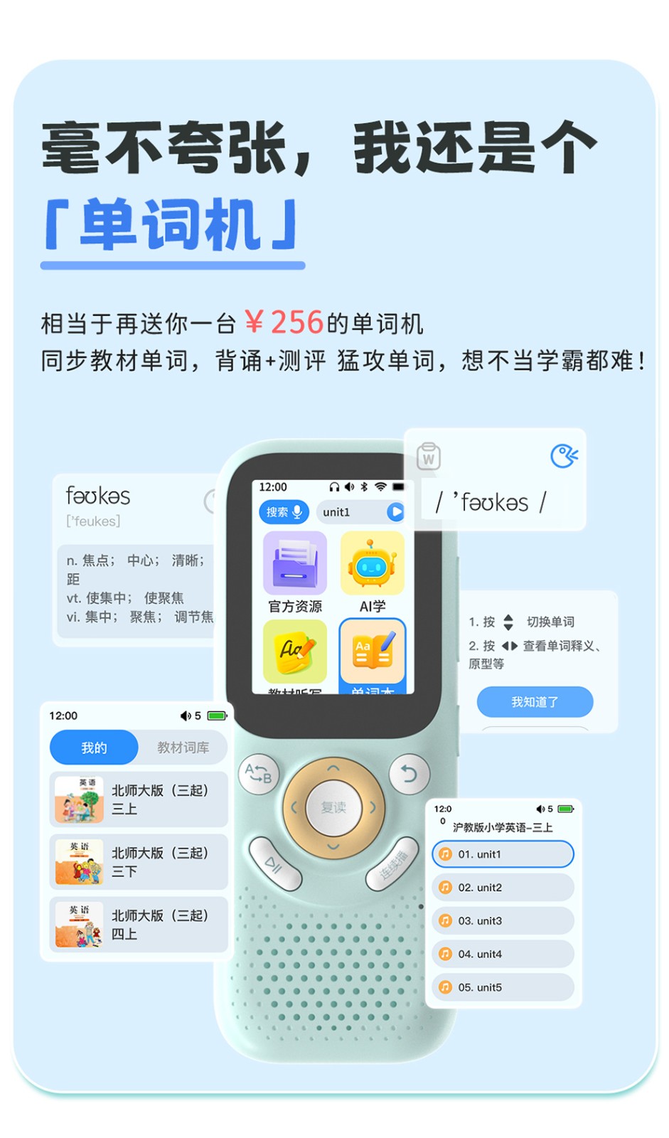 🔥🔥『纯学战士』M5水灵灵地来了!倾听者新品上市🥳 经典升级回归❗ ❗ 海淀四大神器本尊M2S升级款来了🥳 主打一个纯粹听 🏆 新课改英语提分神器,精听精读英语利器 💕 更小巧更轻盈,随身携带更方便 💕全科教材同步,课本预习复习好帮手❗
