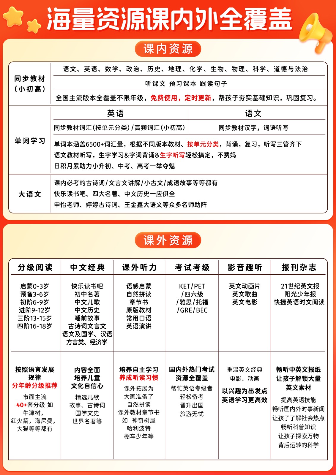 5)实时同步新课标全科教材,海量官方资源应有尽有实时更新,终身免费听,无任何二次收费。
