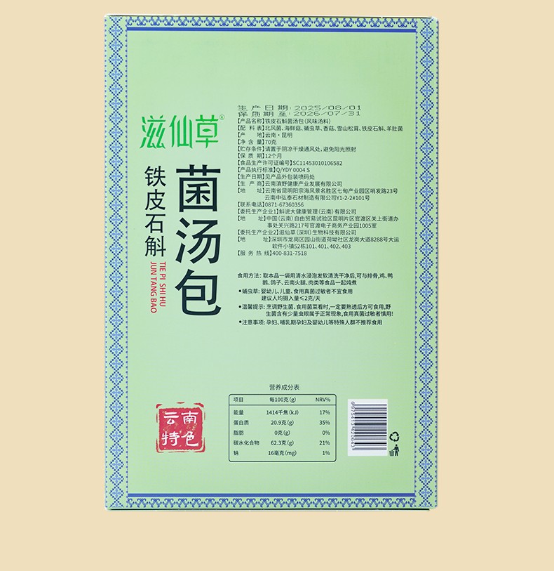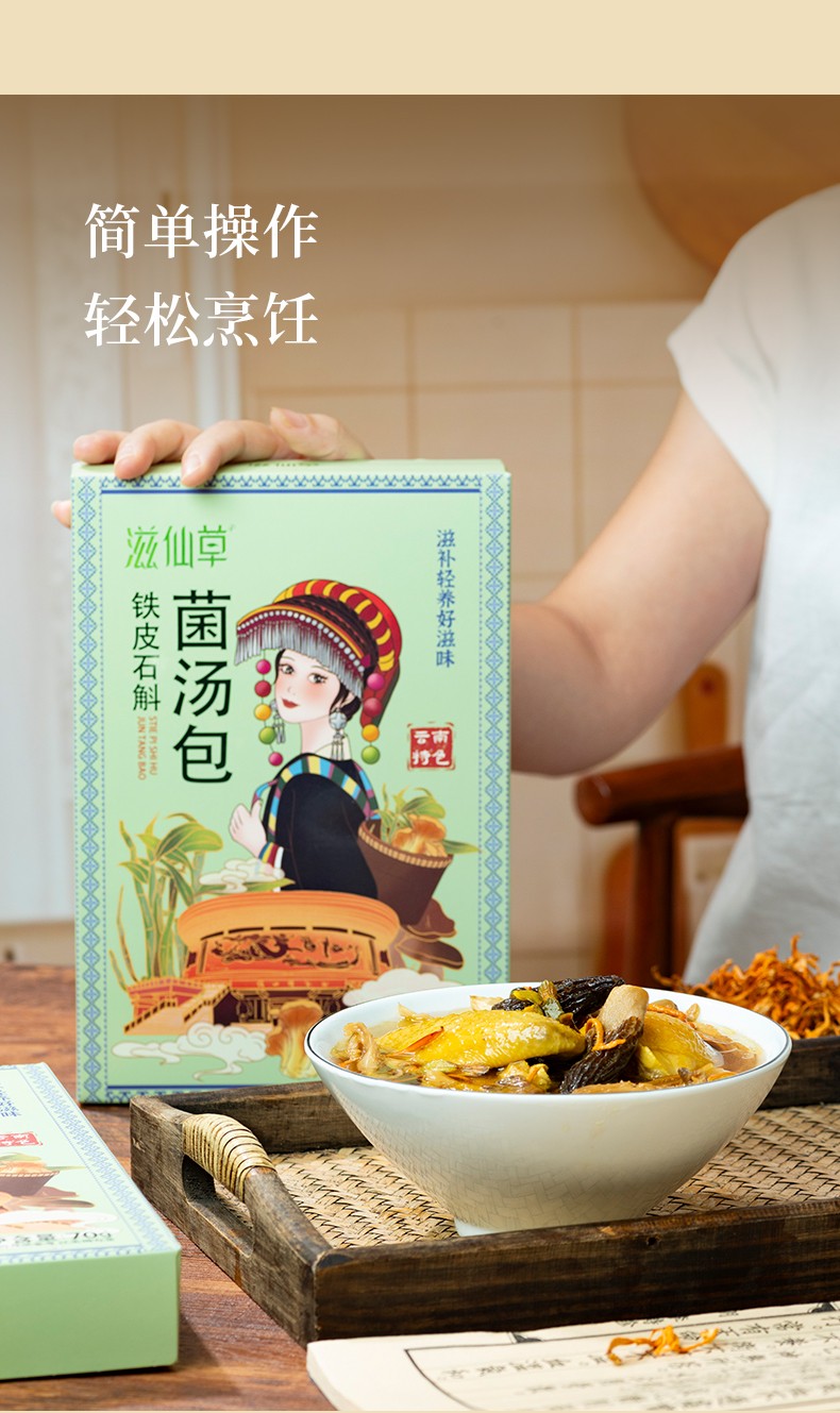 商品名称:滋仙草铁皮石斛菌汤包 70g/盒
