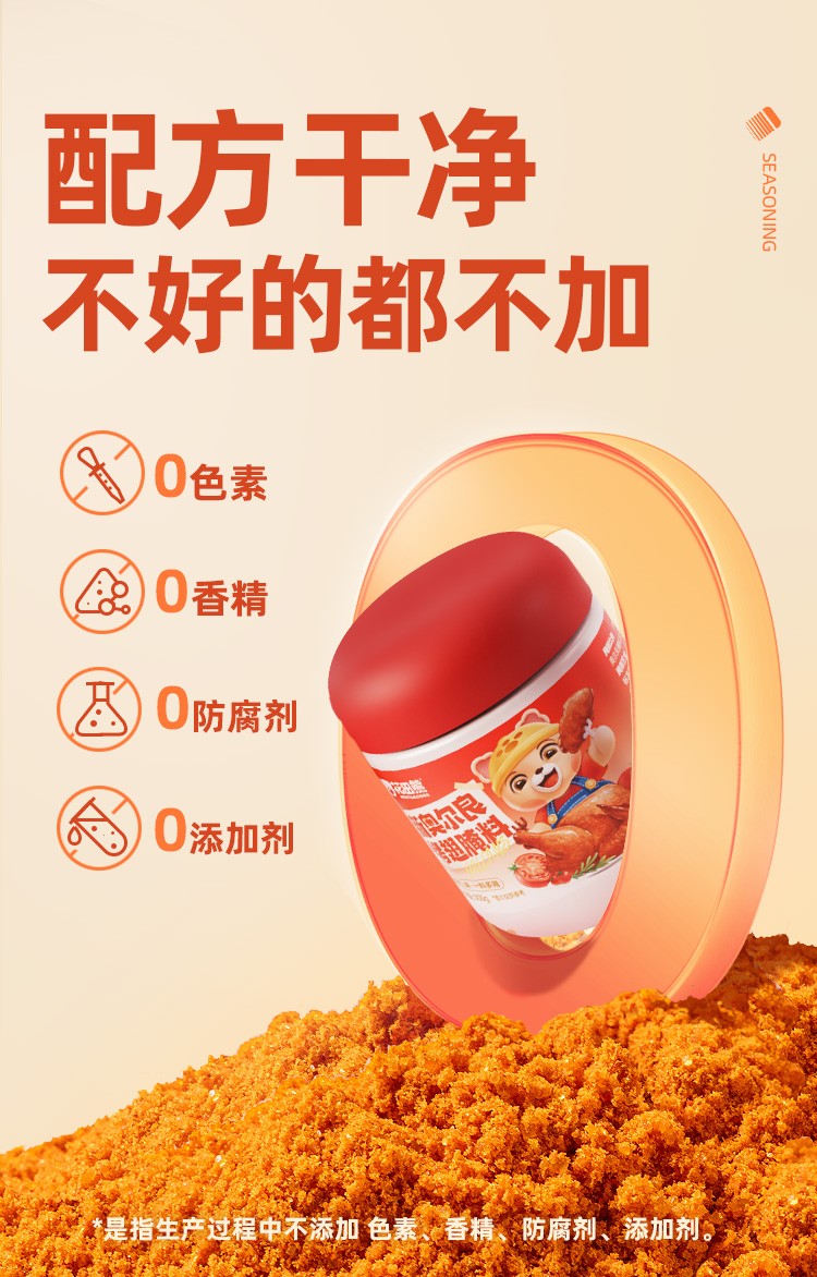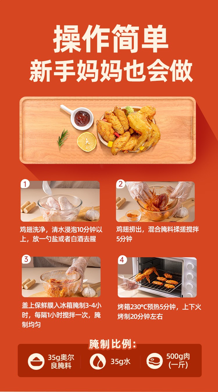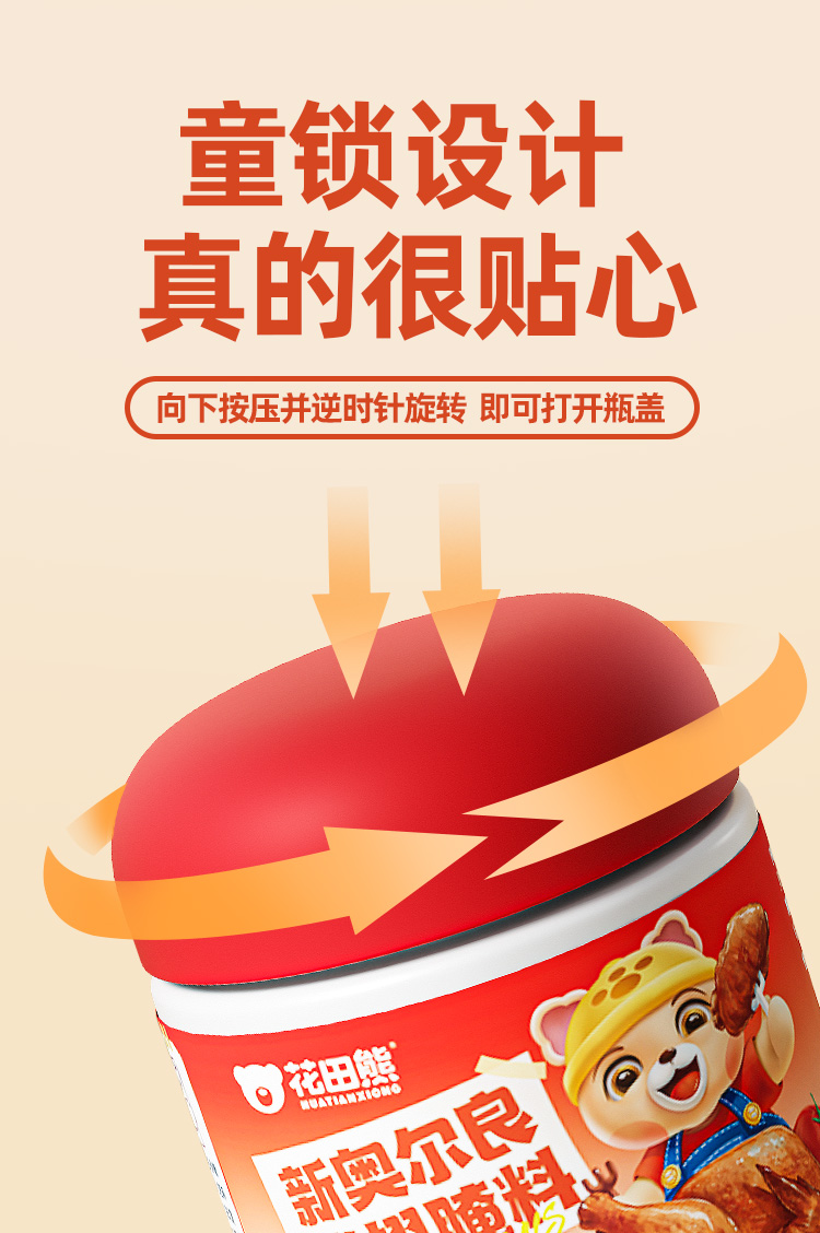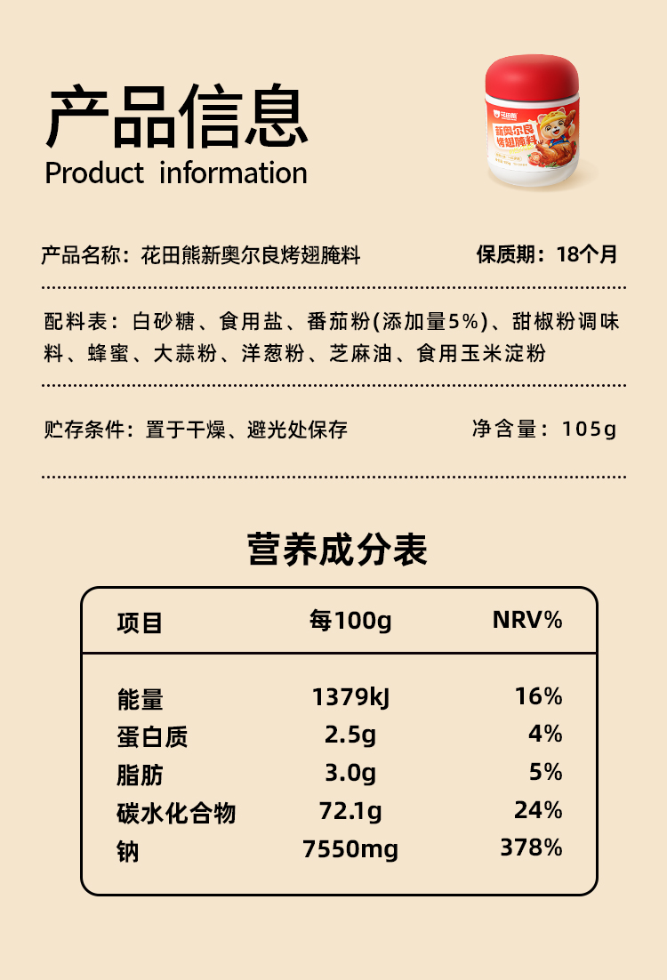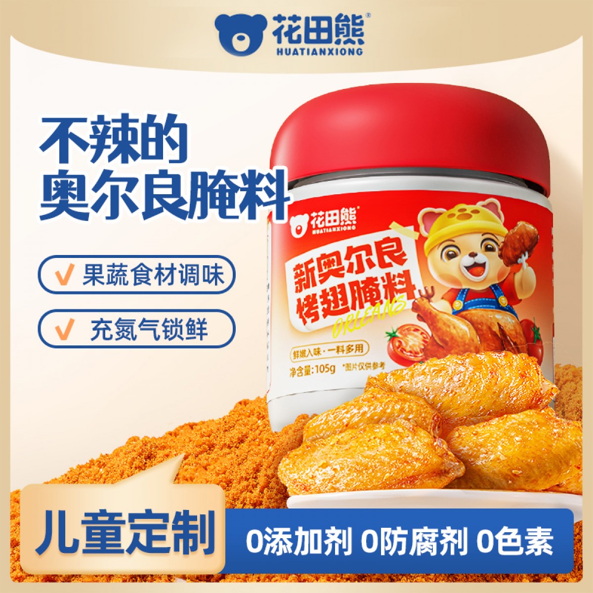 商品名称:2罐装!花田熊儿童奥尔良烤翅腌料105g!鲜嫩多汁,香味浓郁,鸡翅经典伴侣,大人小孩都爱吃的奥尔良烤翅腌料!