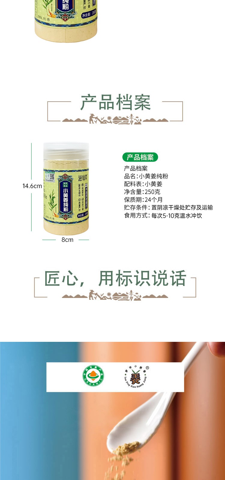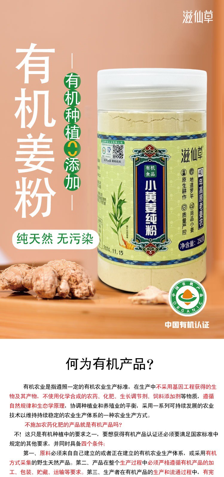 商品名称:滋仙草有机小黄姜纯粉 250g/罐