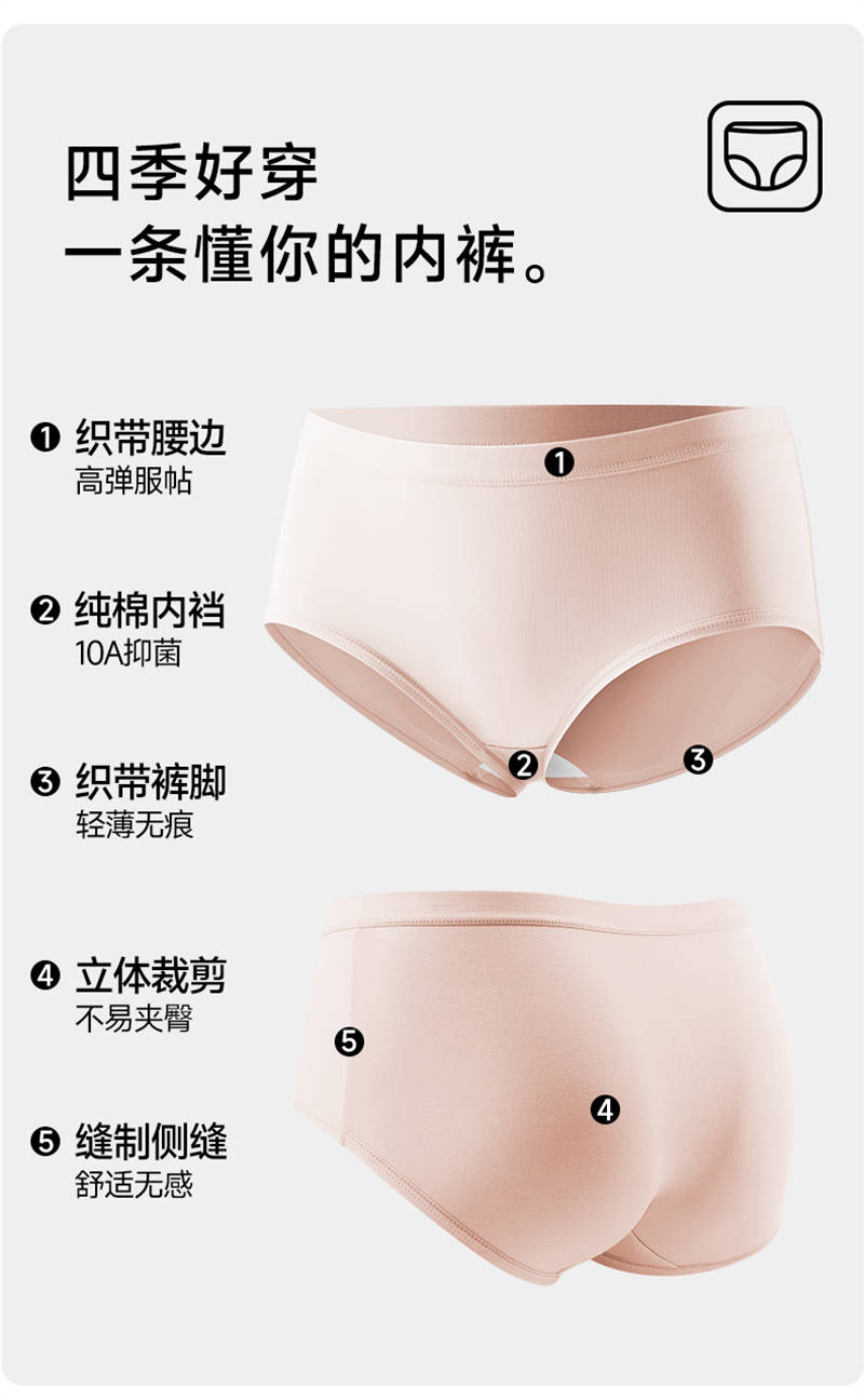 【上新特价】买4条送2条 到手6条!猫人莫代尔10A抑菌女士内裤AAB(品牌直发)