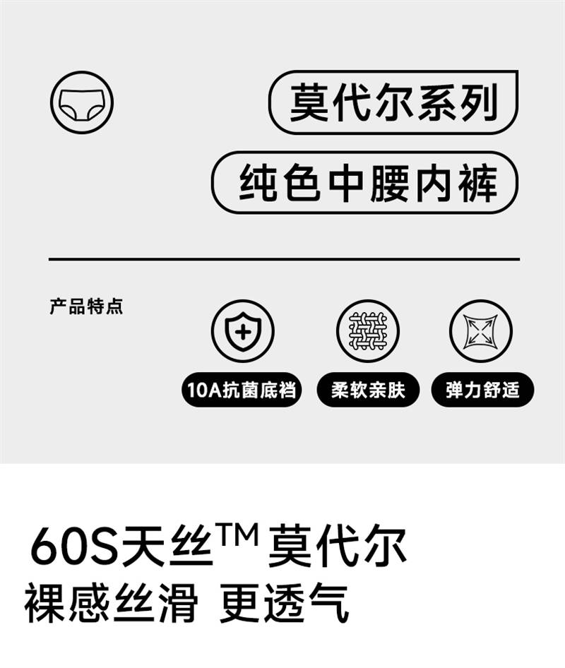 商品名称:【上新特价】买4条送2条 到手6条!猫人莫代尔10A抑菌女士内裤AAB(品牌直发)