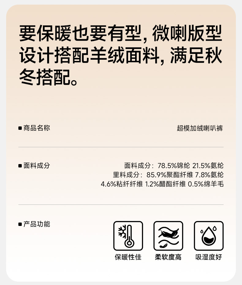 商品名称:草本初色时尚喇叭裤显瘦高腰休闲外穿显高修身542AS款一条装
