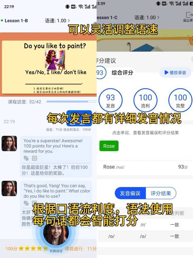 这个课的亮点真的非常非常多,MyAI口袋外教就完全打破了这些限制,标准地道的发音,高强度、高频次、全年无休的优质教学服务,让孩子每天都能和线上AI北美外教练口语,帮助孩子摆脱“哑巴英语的困扰。