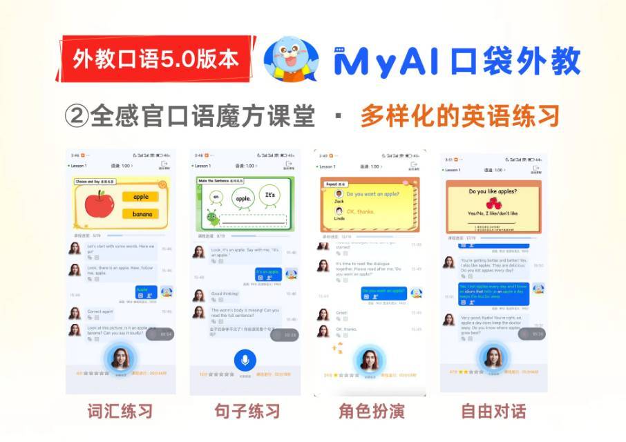 另外,MyAI还和校外热门教材紧密结合,未来将陆续推出一系列配套口语课程,全方位*孩子的语言能力成长。