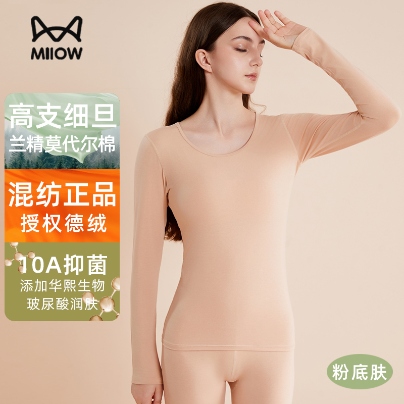 【周三闪购】猫人莫代尔发热套装!秋衣秋裤线衣线裤女奥地利天丝兰精莫代尔+新疆阿克苏长绒棉!保暖舒适高弹力~