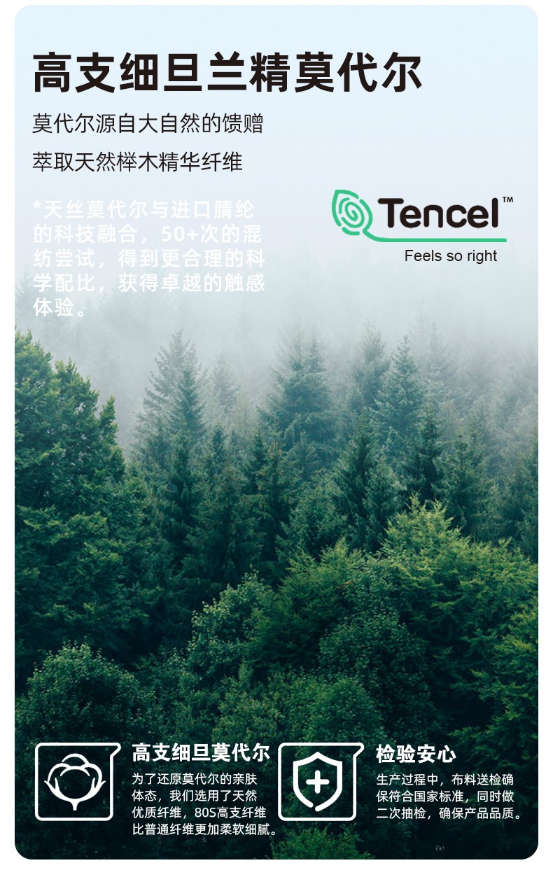 ✅兰精莫代尔面料 ✅添加了华熙生物玻尿酸 ✅10A级抑菌面料 ✅SDF正品德绒授权 ✅A类一等品面料