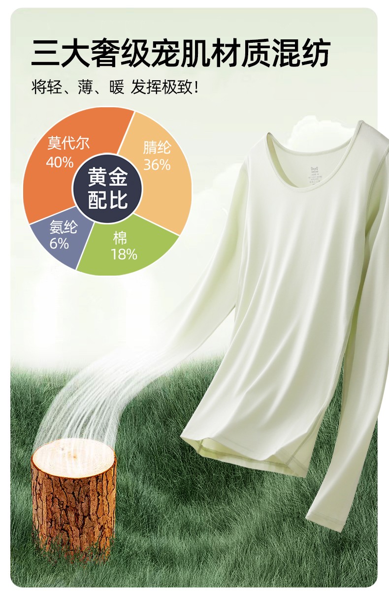 商品名称:【周三闪购】猫人莫代尔发热套装!秋衣秋裤线衣线裤女奥地利天丝兰精莫代尔+新疆阿克苏长绒棉!保暖舒适高弹力~