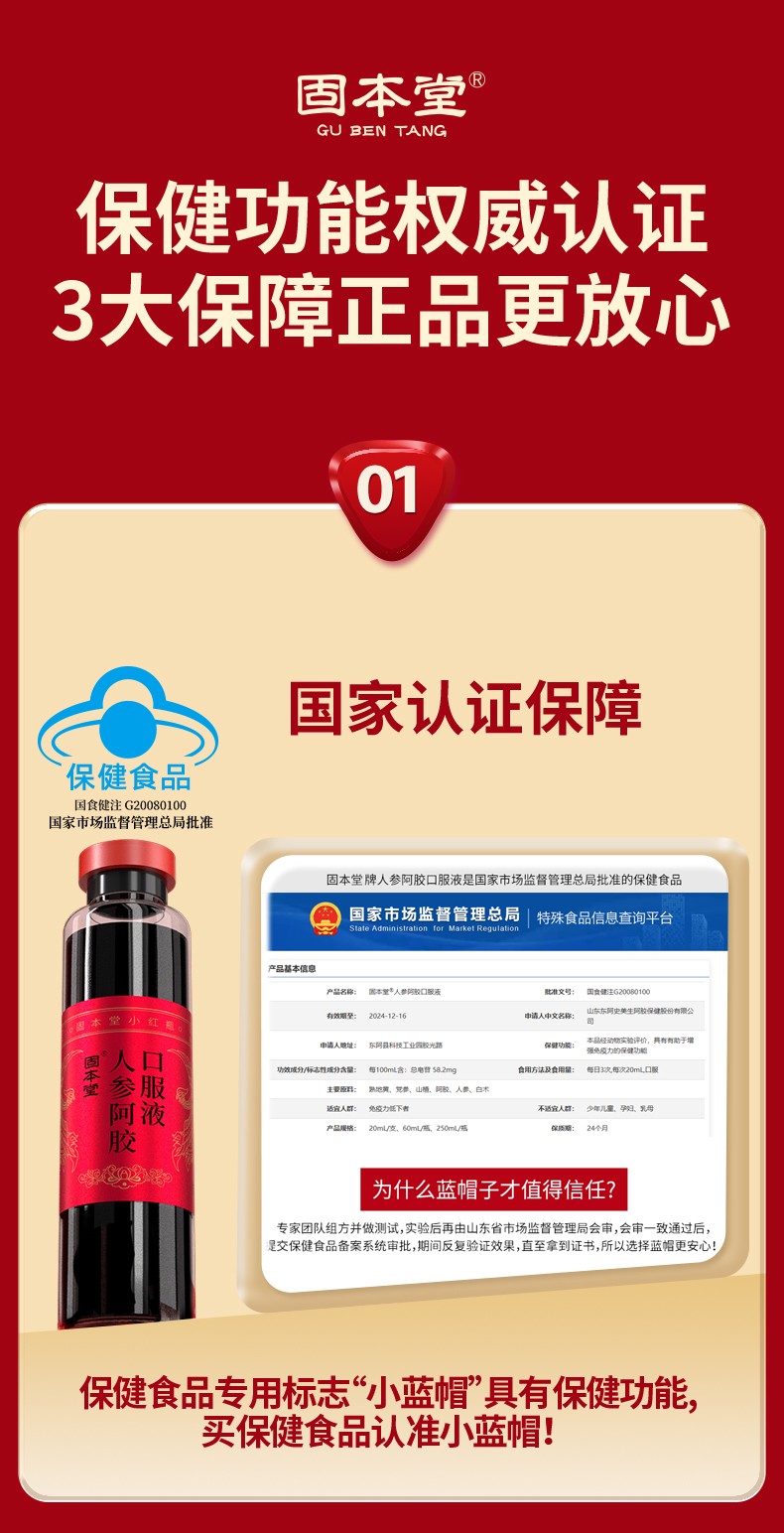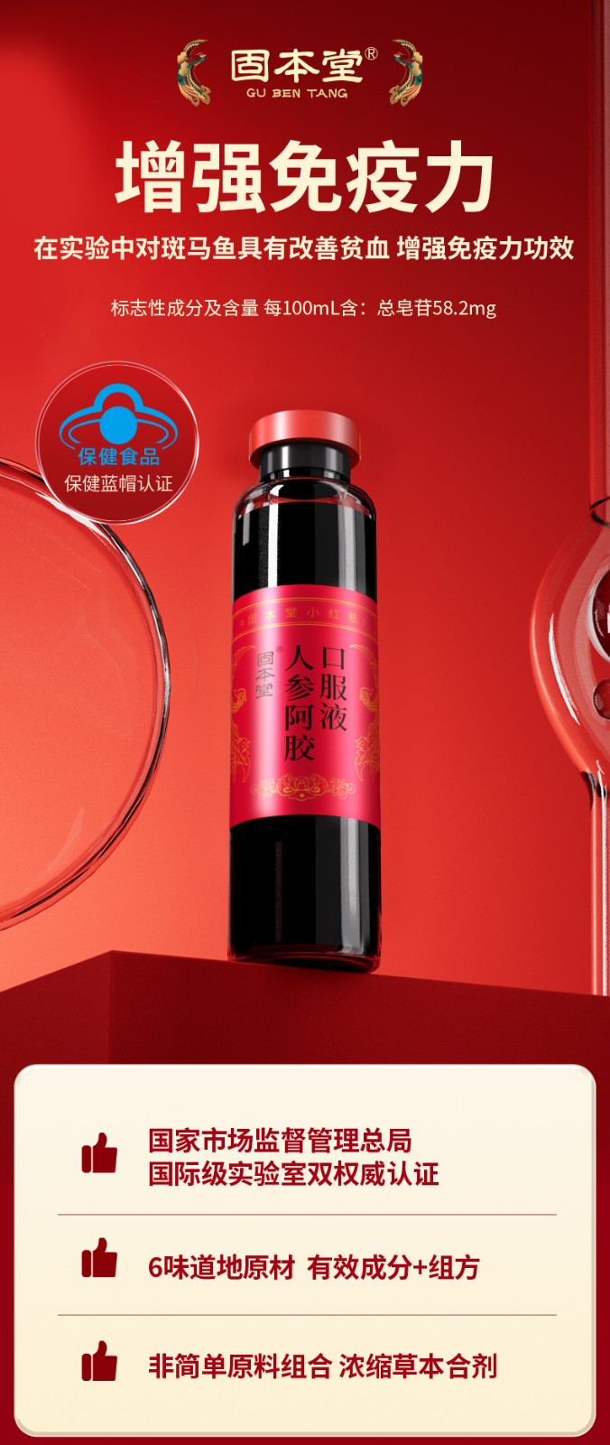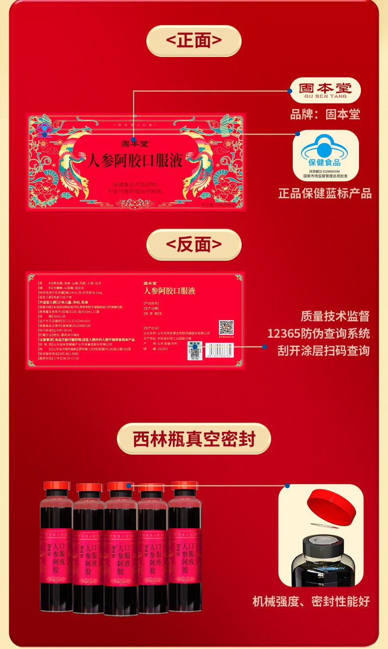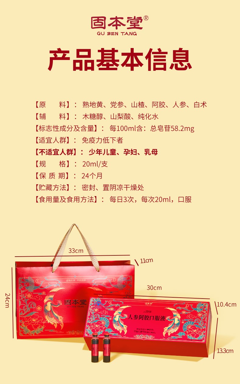 商品名称:【养身佳品】固本堂人参阿胶口服液黄芪女士女生调理养护补品!