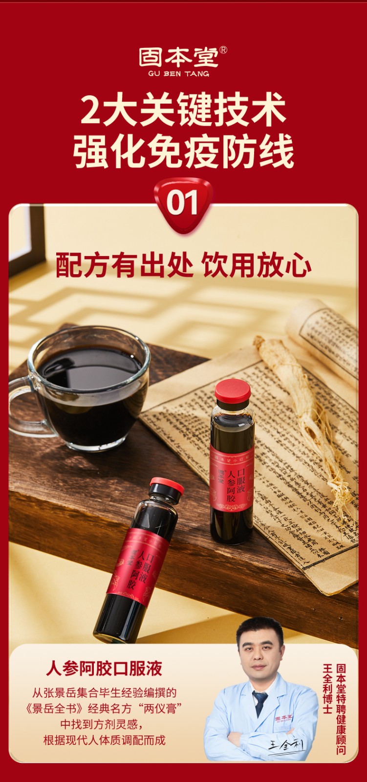 【养身佳品】固本堂人参阿胶口服液黄芪女士女生调理养护补品!