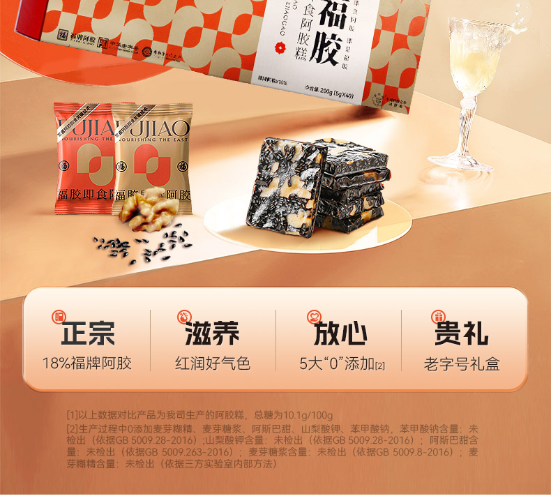 商品名称:福胶即食阿胶糕200g 低糖低脂高阿胶含量