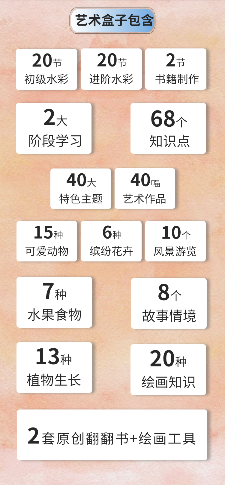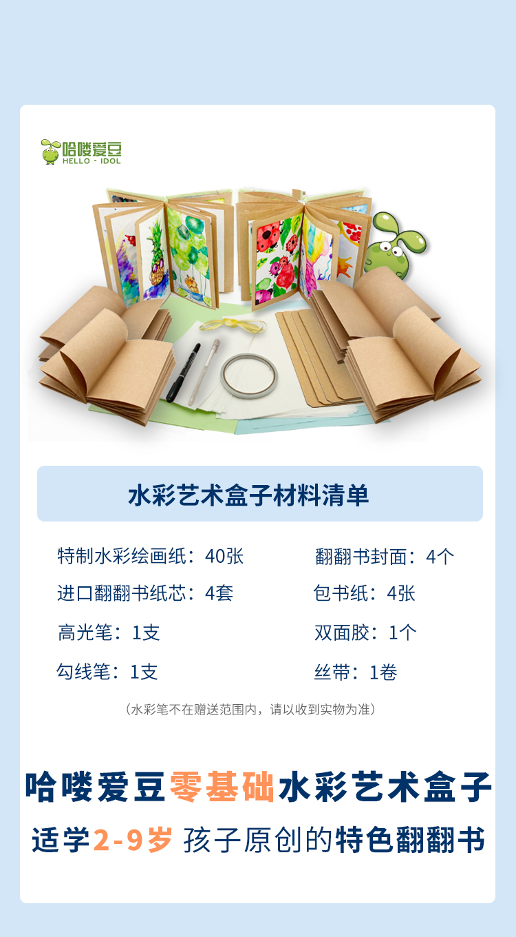 双十一超级福利活动,买课赠课,哈喽爱豆 水彩艺术课 不赠水彩笔 赠送全套绘画材料,送立体摆台画2幅