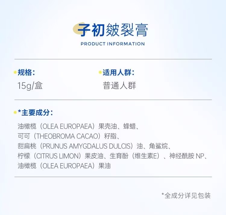商品名称:【秋冬滋润防皴裂】子初防皴裂膏15g、子初蛇油膏15g