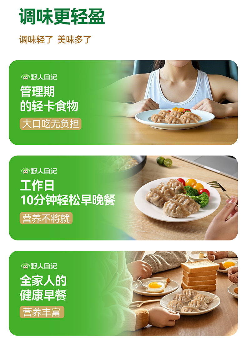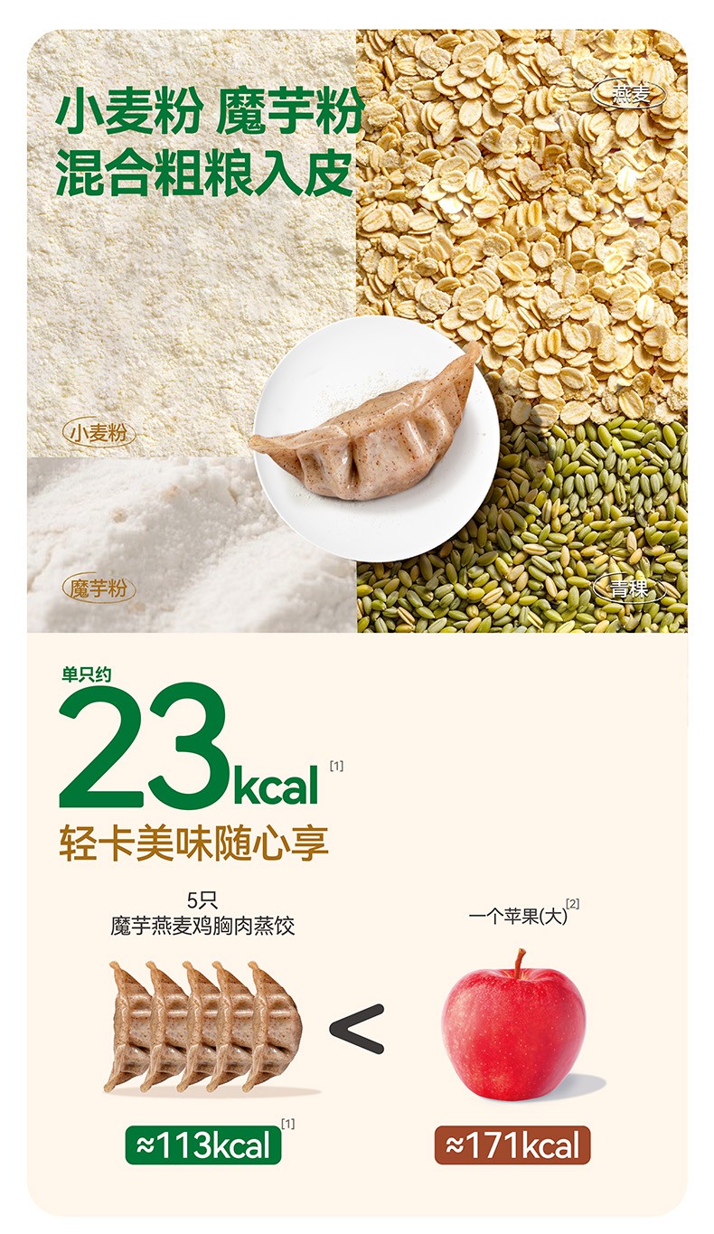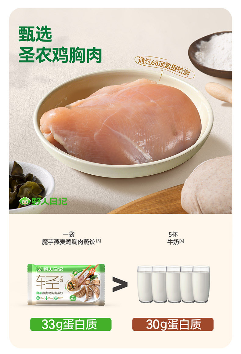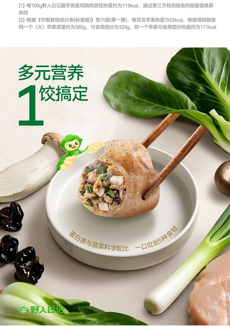 商品名称:野人日记魔芋燕麦鸡胸肉蒸饺500g/袋,低脂低卡健康早餐优选~比普通饺子热量减半!吃着放心,不担心长胖!重点是很好吃!健康,美味,我都要!