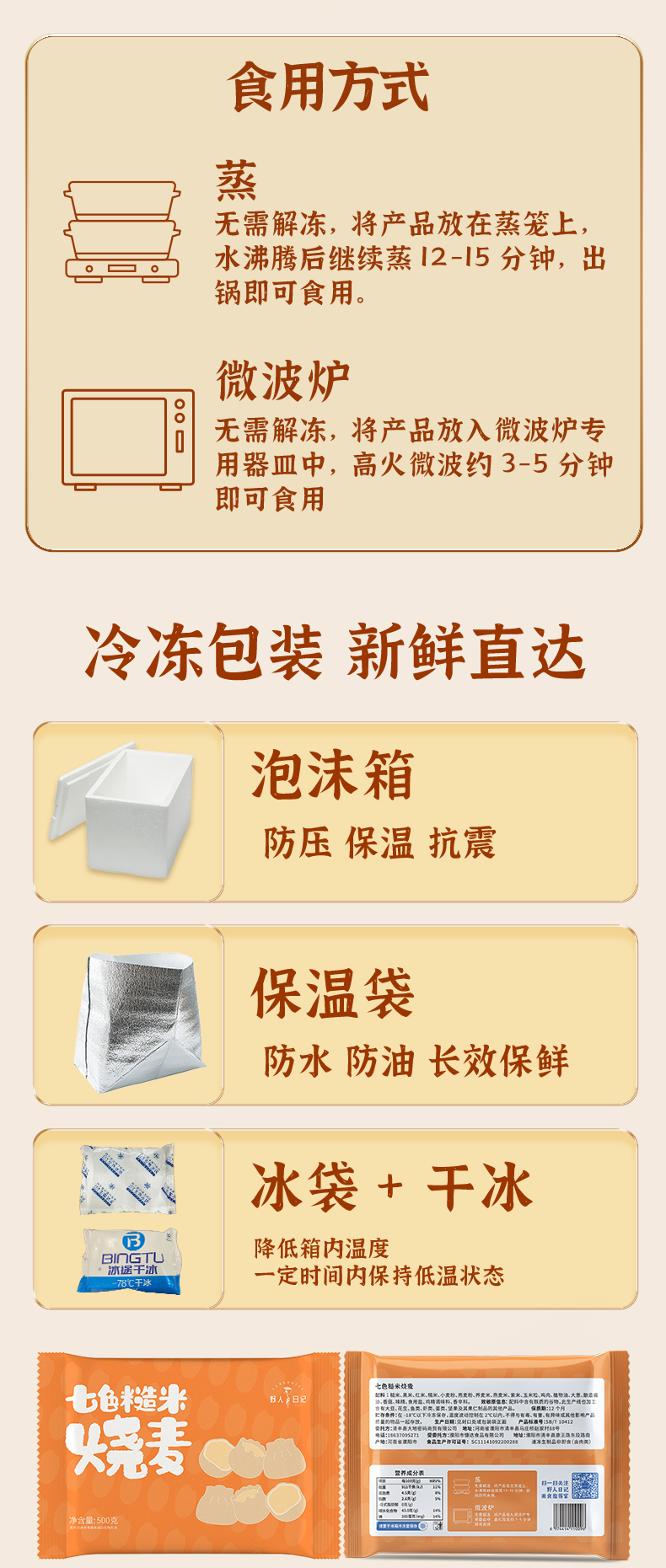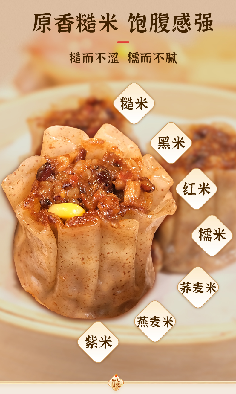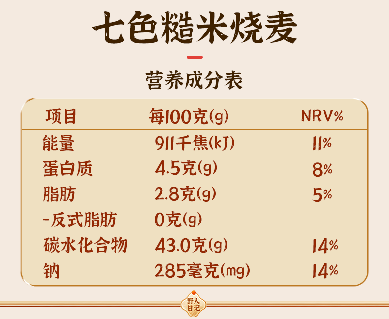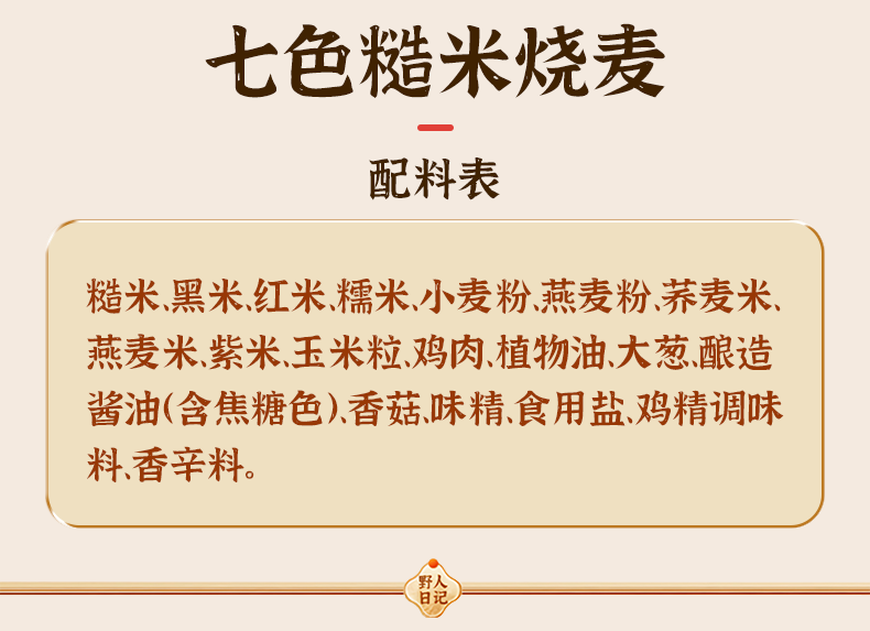 商品名称:野人日记七色糙米烧麦 500g/袋