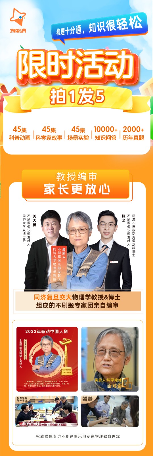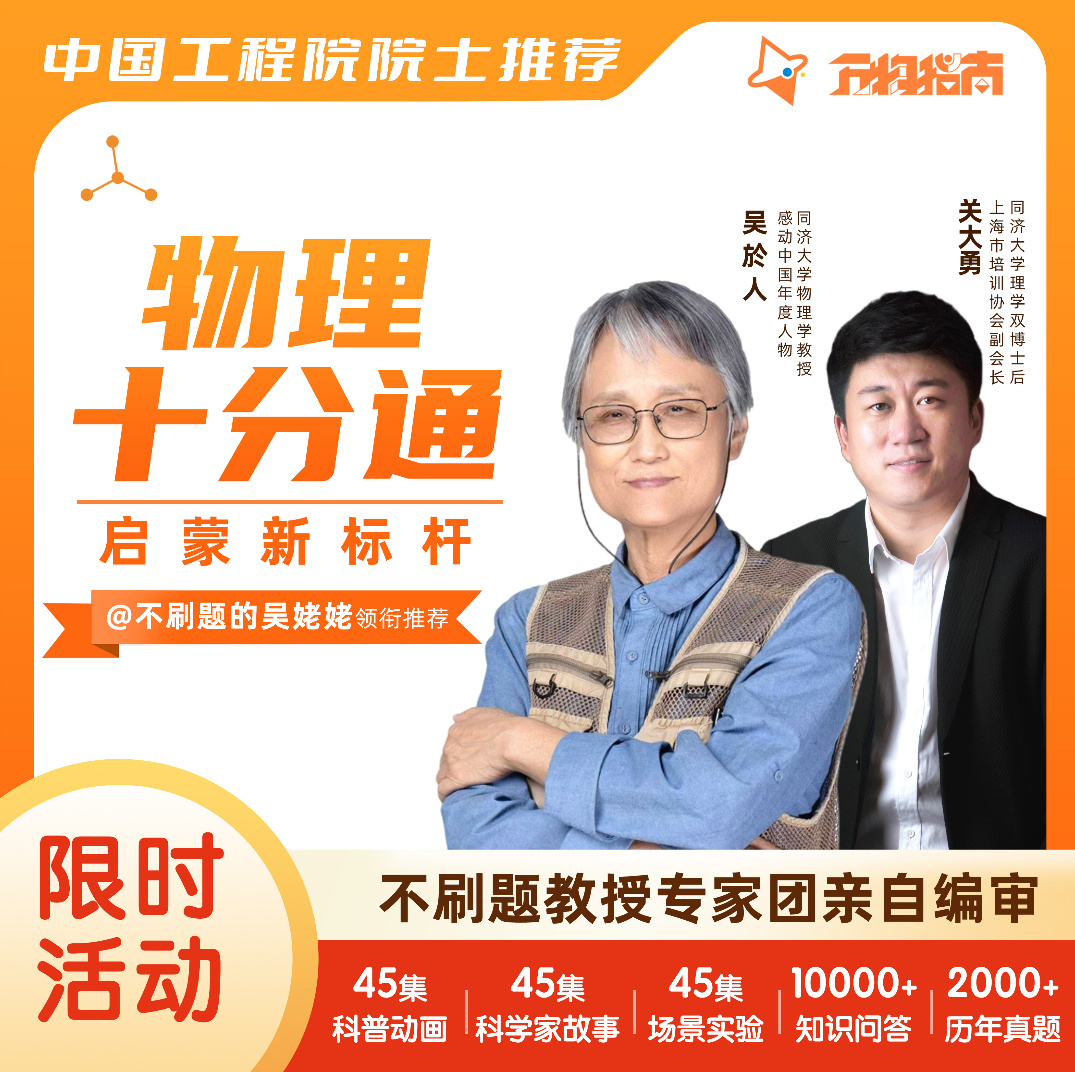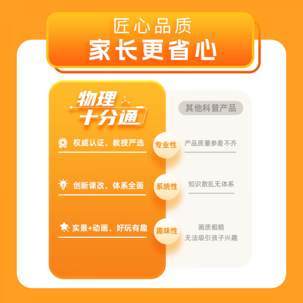 商品名称:【双11专属!】物理十分通5年卡(买3年再送2年!)中国工程院院士推荐!物理启蒙新标杆!135集物理纯享内容,45集科普动画,45集场景实验,45集科学家故事,10000+知识问答,2000+历年真题