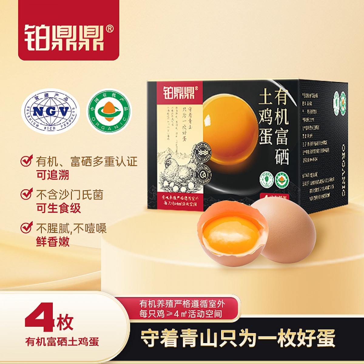 铂鼎鼎有机富硒土鸡蛋4枚试吃装 净重180g